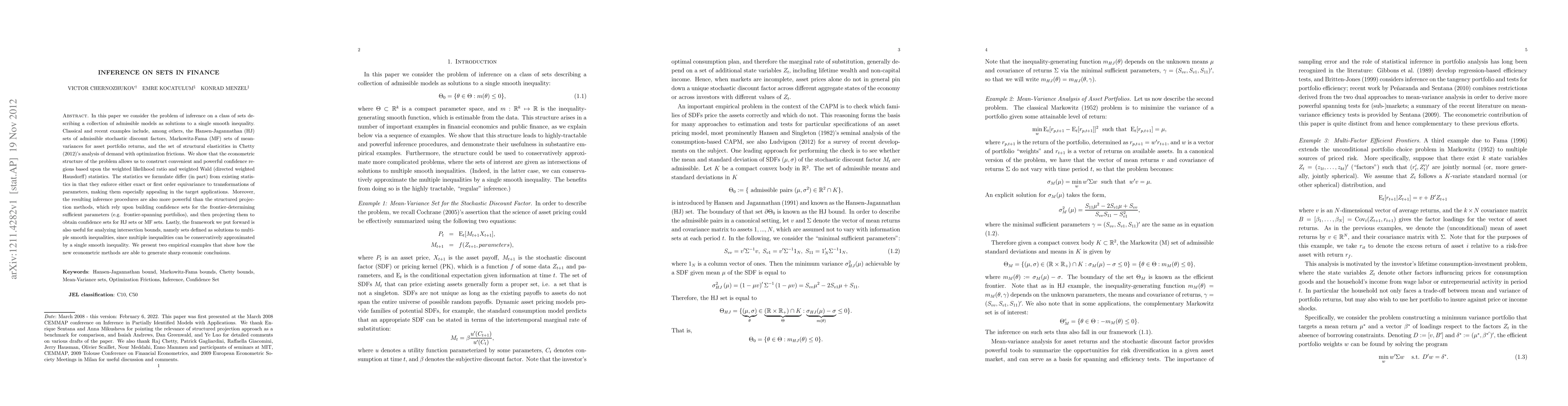 In this paper we consider the problem of inference on a class of sets describing a collection of admissible models as solutions to a single smooth inequality. Classical and recent examples include, among others, the Hansen-Jagannathan (HJ) sets of admissible stochastic discount factors, Markowitz-Fama (MF) sets of mean-variances for asset portfolio returns, and the set of structural elasticities in Chetty (2012)'s analysis of demand with optimization frictions. We show that the econometric structure of the problem allows us to construct convenient and powerful confidence regions based upon the weighted likelihood ratio and weighted Wald (directed weighted Hausdorff) statistics. The statistics we formulate differ (in part) from existing statistics in that they enforce either exact or first order equivariance to transformations of parameters, making them especially appealing in the target applications. Moreover, the resulting inference procedures are also more powerful than the structured projection methods, which rely upon building confidence sets for the frontier-determining sufficient parameters (e.g. frontier-spanning portfolios), and then projecting them to obtain confidence sets for HJ sets or MF sets. Lastly, the framework we put forward is also useful for analyzing intersection bounds, namely sets defined as solutions to multiple smooth inequalities, since multiple inequalities can be conservatively approximated by a single smooth inequality. We present two empirical examples that show how the new econometric methods are able to generate sharp economic conclusions.