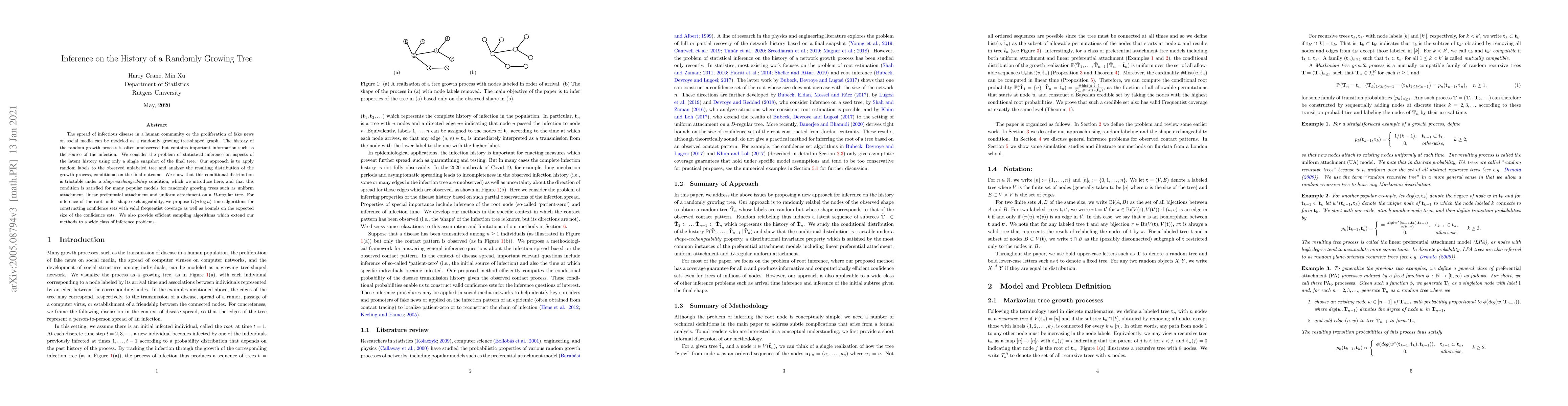 Researchers developed a method to infer the history of a randomly growing tree from a single snapshot, using shape-exchangeability and O(n log n) time algorithms for confidence sets with valid frequentist coverage.