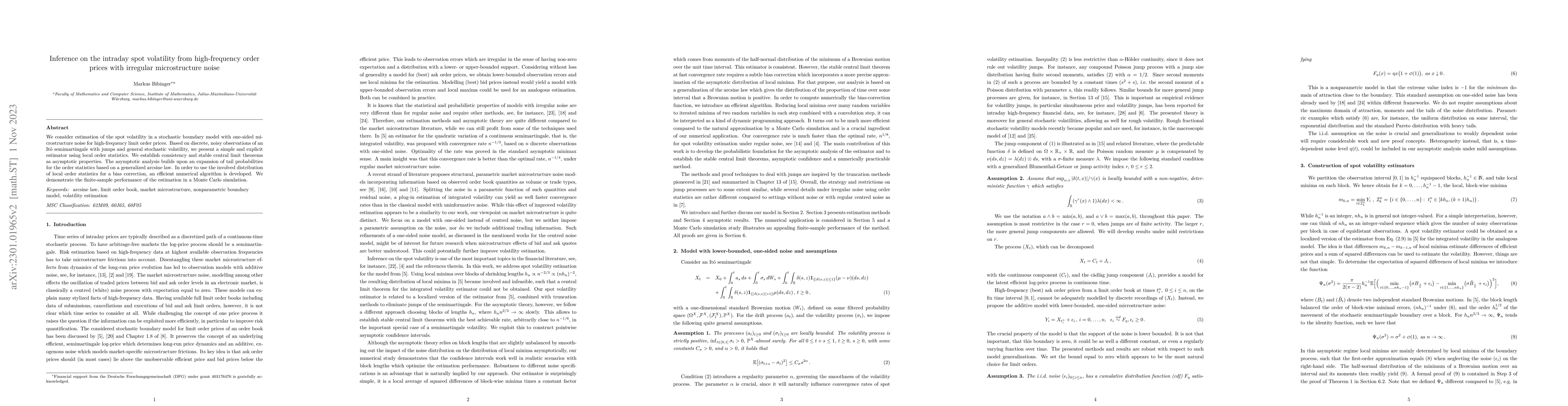 This paper proposes an explicit estimator for intraday spot volatility based on high-frequency limit order prices, accounting for one-sided microstructure noise. The estimator uses local order statistics and demonstrates consistency and asymptotic normality through a generalized arcsine law expansion.