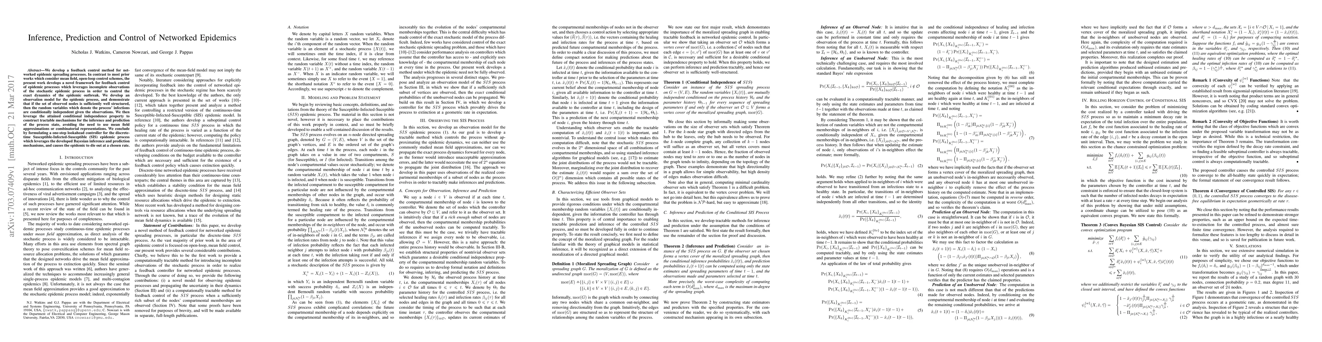 Researchers develop a novel framework for controlling networked epidemics using incomplete observations, allowing for precise inference and prediction of the epidemic process. They also create a one-step lookahead controller that helps the epidemic die out at a chosen rate.