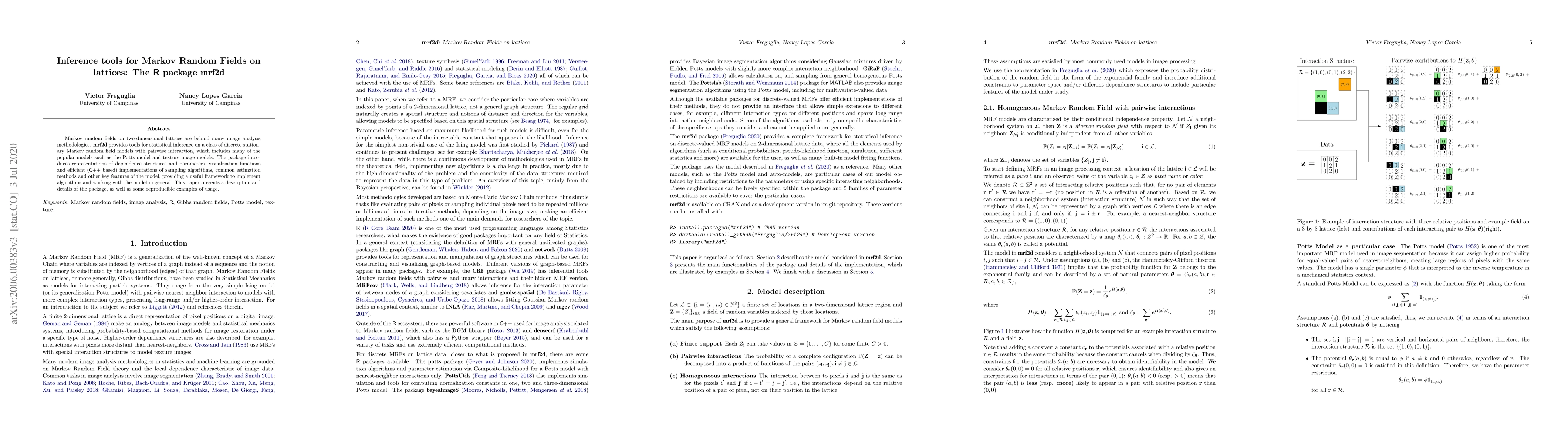 Markov random fields on two-dimensional lattices are behind many image analysis methodologies. mrf2d provides tools for statistical inference on a class of discrete stationary Markov random field models with pairwise interaction, which includes many of the popular models such as the Potts model and texture image models. The package introduces representations of dependence structures and parameters, visualization functions and efficient (C++ based) implementations of sampling algorithms, common estimation methods and other key features of the model, providing a useful framework to implement algorithms and working with the model in general. This paper presents a description and details of the package, as well as some reproducible examples of usage.