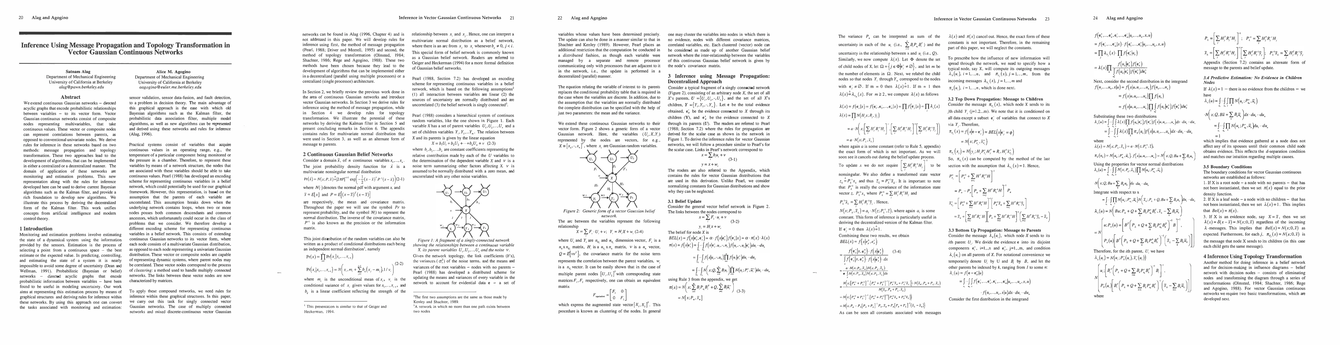 We extend Gaussian networks - directed acyclic graphs that encode probabilistic relationships between variables - to its vector form. Vector Gaussian continuous networks consist of composite nodes representing multivariates, that take continuous values. These vector or composite nodes can represent correlations between parents, as opposed to conventional univariate nodes. We derive rules for inference in these networks based on two methods: message propagation and topology transformation. These two approaches lead to the development of algorithms, that can be implemented in either a centralized or a decentralized manner. The domain of application of these networks are monitoring and estimation problems. This new representation along with the rules for inference developed here can be used to derive current Bayesian algorithms such as the Kalman filter, and provide a rich foundation to develop new algorithms. We illustrate this process by deriving the decentralized form of the Kalman filter. This work unifies concepts from artificial intelligence and modern control theory.