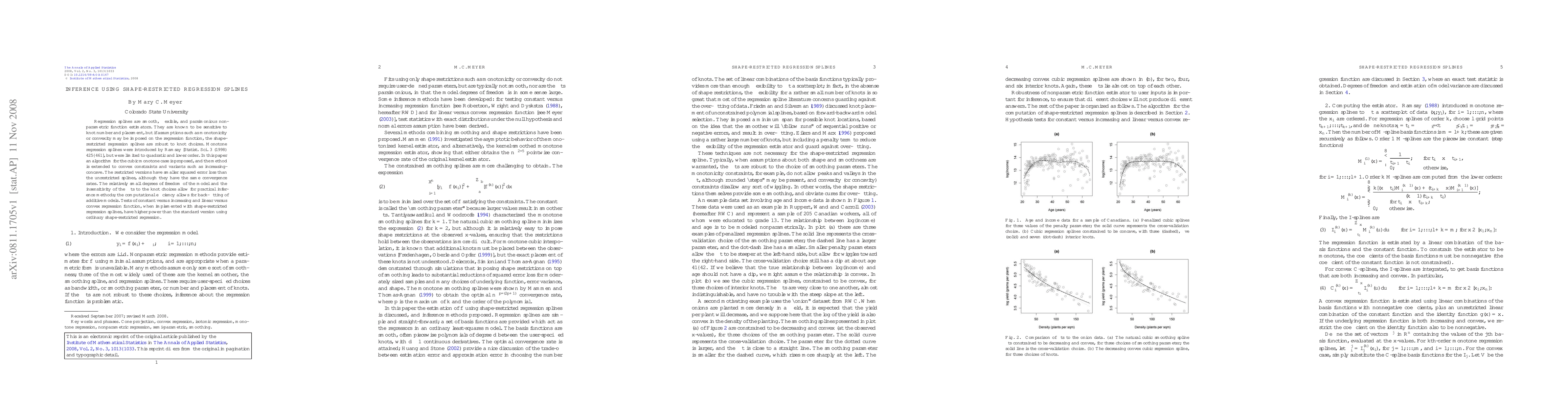 This paper proposes an algorithm for cubic monotone regression splines and extends it to convex constraints, demonstrating improved robustness and smaller squared error loss compared to unrestricted splines. The shape-restricted splines enable more powerful tests for regression function shapes.