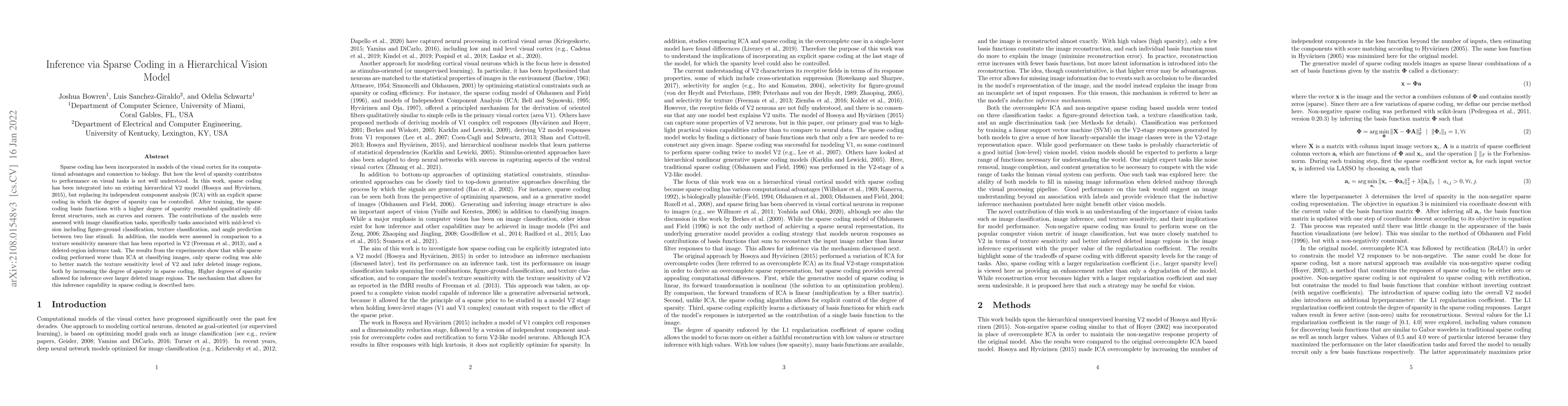 This paper explores how varying levels of sparsity in sparse coding within a hierarchical vision model affect performance on visual tasks. The study finds that while sparse coding performs worse than independent component analysis for image classification, it excels at tasks requiring texture sensitivity and inference over deleted image regions, especially with higher sparsity levels.