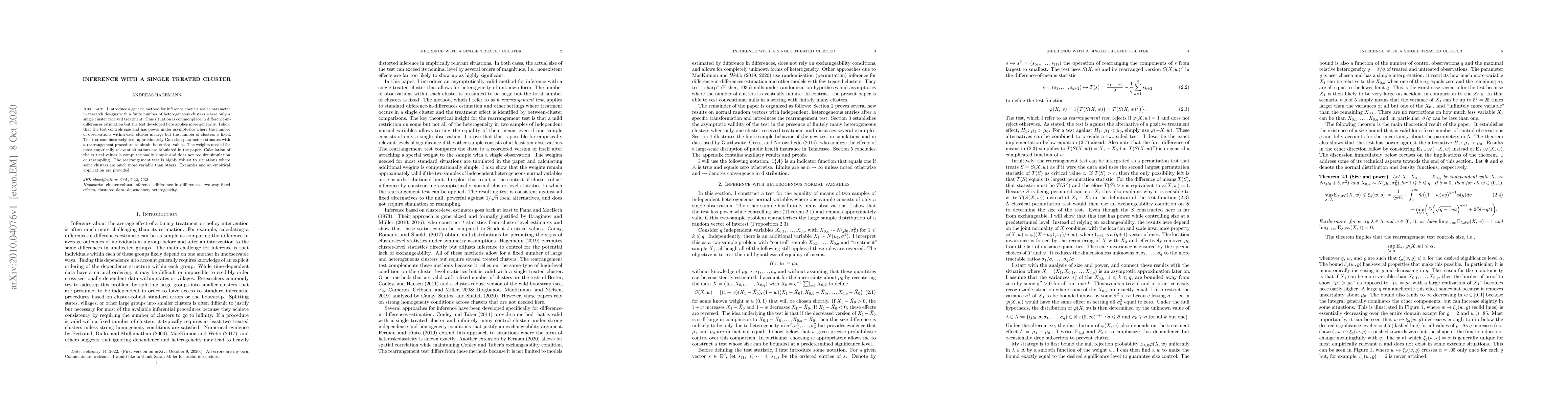 A new method for statistical inference is introduced to analyze a single treated cluster in heterogeneous research designs, offering robustness to varying cluster variability and simplifying critical value calculation.