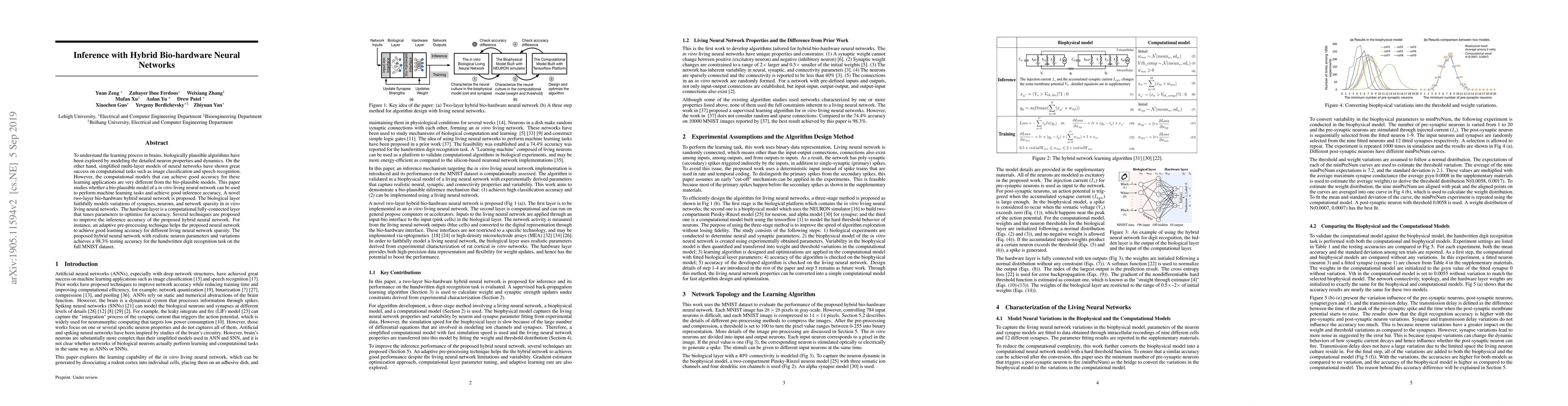 This paper proposes a hybrid bio-hardware neural network combining a biologically plausible in vitro living neural network with a computational layer to perform machine learning tasks. The hybrid model achieves 98.3% accuracy on the MNIST dataset, demonstrating the potential of bio-plausible models for practical applications.