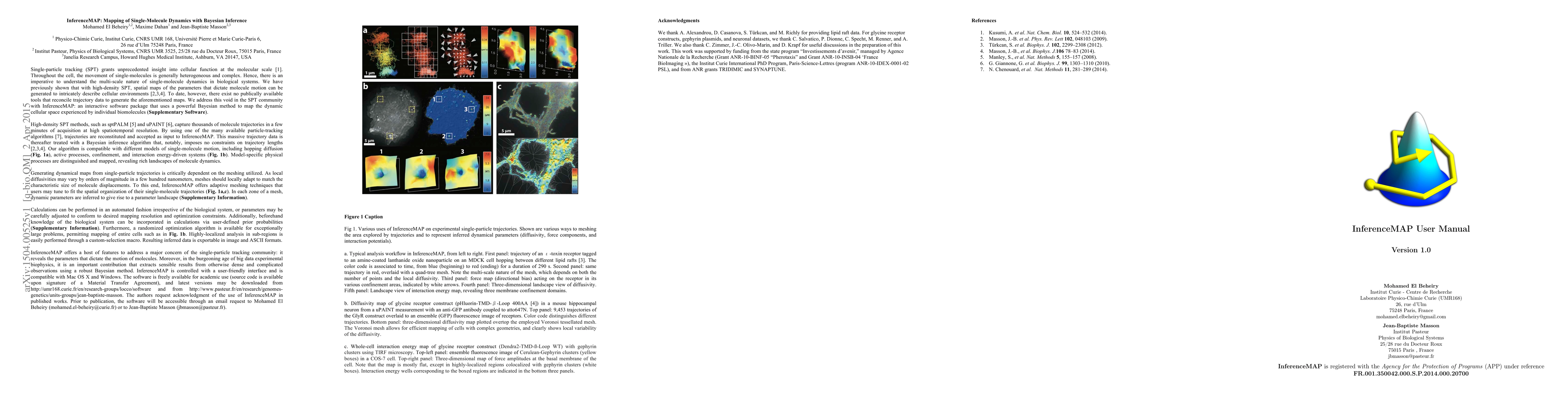 Single-particle tracking (SPT) grants unprecedented insight into cellular function at the molecular scale [1]. Throughout the cell, the movement of single-molecules is generally heterogeneous and complex. Hence, there is an imperative to understand the multi-scale nature of single-molecule dynamics in biological systems. We have previously shown that with high-density SPT, spatial maps of the parameters that dictate molecule motion can be generated to intricately describe cellular environments [2,3,4]. To date, however, there exist no publically available tools that reconcile trajectory data to generate the aforementioned maps. We address this void in the SPT community with InferenceMAP: an interactive software package that uses a powerful Bayesian method to map the dynamic cellular space experienced by individual biomolecules.