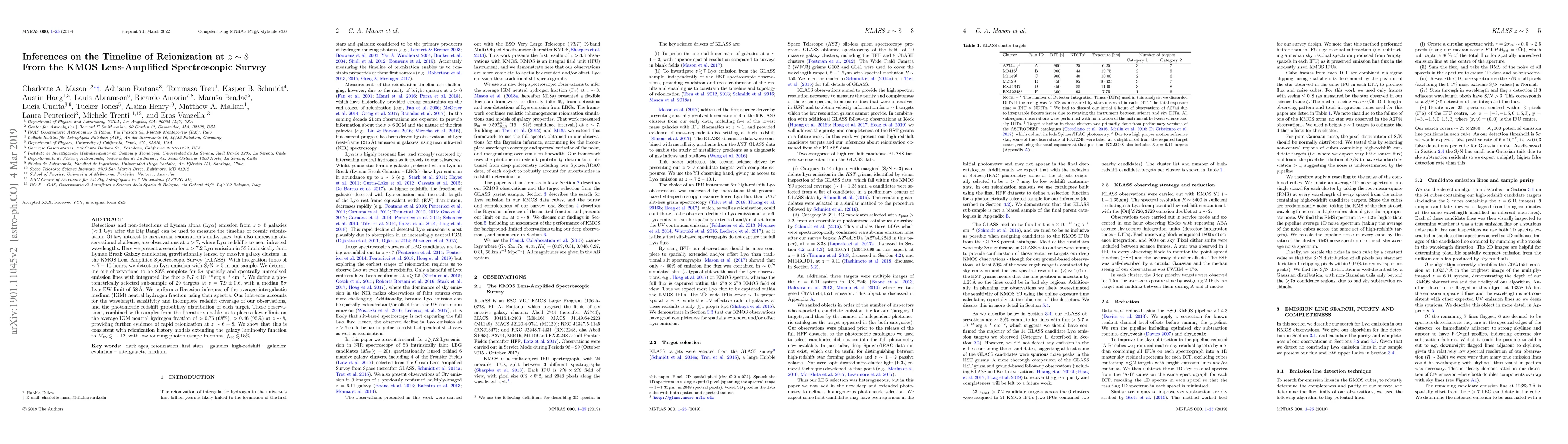This study uses the KMOS Lens-Amplified Spectroscopic Survey to search for Lyman alpha emission in faint galaxies at z > 7.2, finding no strong Ly$\alpha$ signals, which supports a lower limit on the neutral hydrogen fraction at z ~ 8, indicating rapid reionization in the early universe.