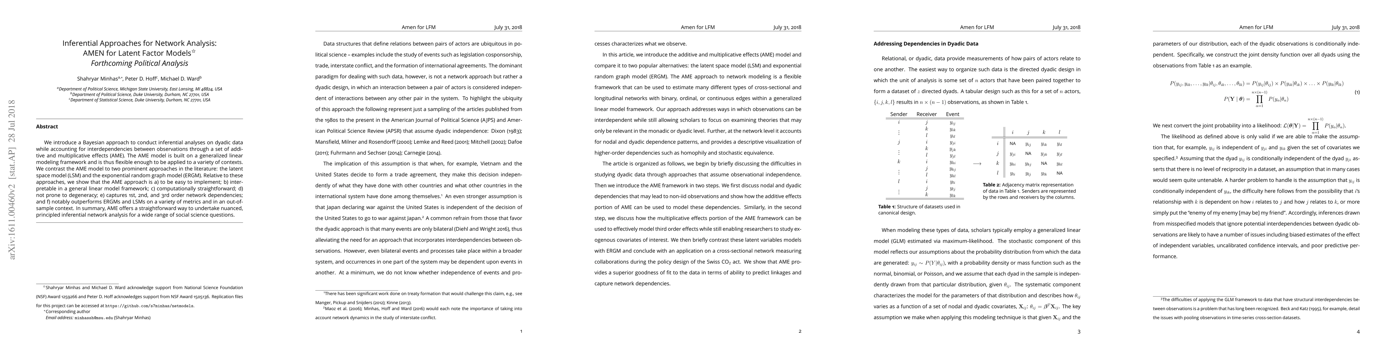 The research introduces a Bayesian AME (Additive and Multiplicative Effects) model for inferential network analysis, contrasting it with LSM and ERGM models. The AME model is found to be easy to implement, interpretable, computationally efficient, and better at capturing network dependencies, outperforming other models in various metrics and out-of-sample contexts.