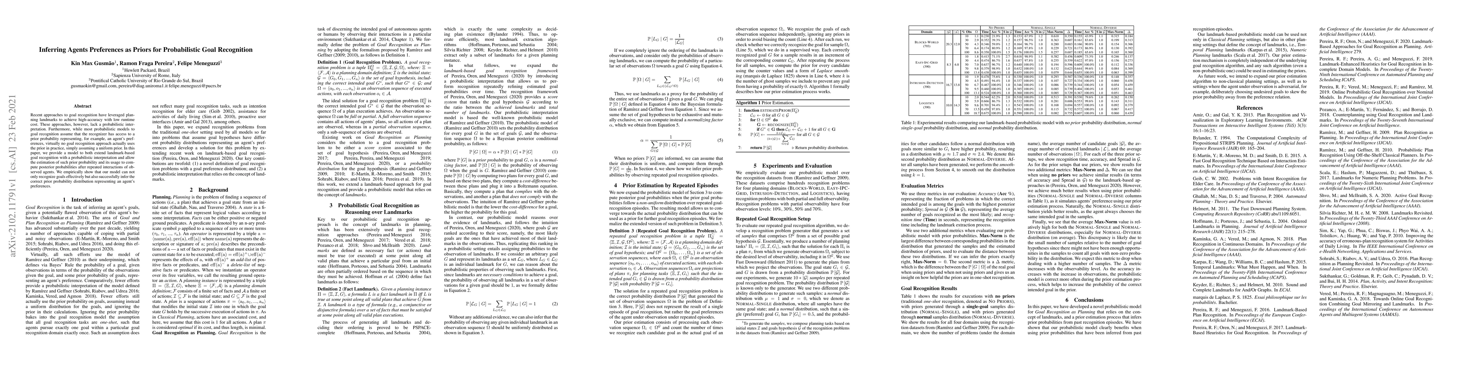 This paper introduces a probabilistic model that extends landmark-based goal recognition by incorporating agent preferences as priors, enabling the estimation and use of these priors to compute posterior probabilities. Empirical results demonstrate effective goal recognition and accurate inference of prior probability distributions reflecting agent preferences.