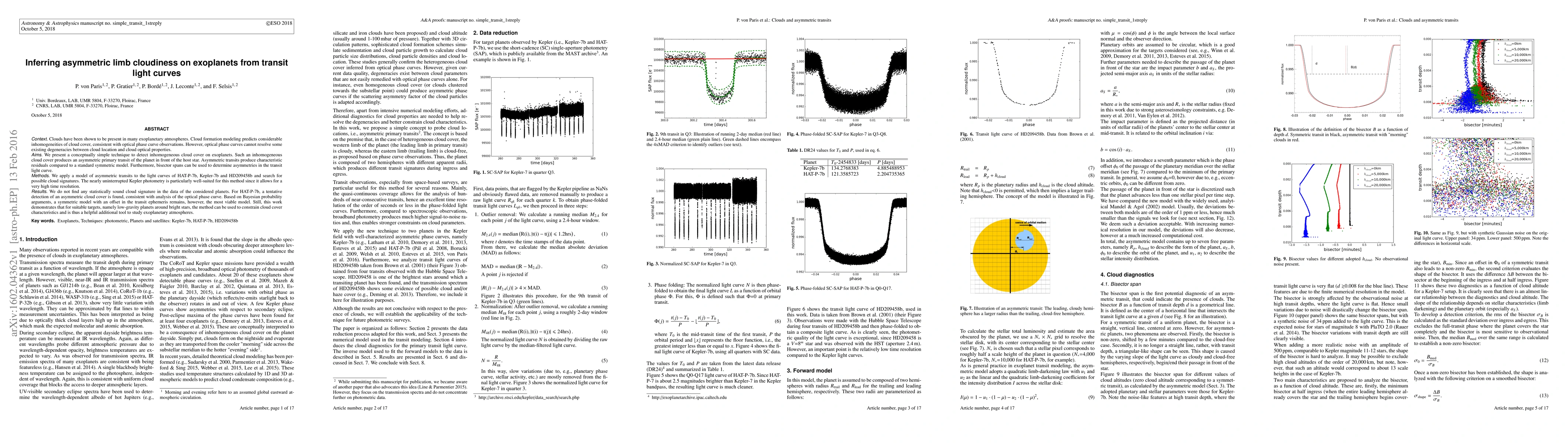 This paper proposes a method to detect asymmetric cloud cover on exoplanets through analysis of asymmetric transit light curves, finding no definitive cloud signatures in the studied planets but demonstrating the potential of the technique for future studies of low-gravity planets around bright stars.