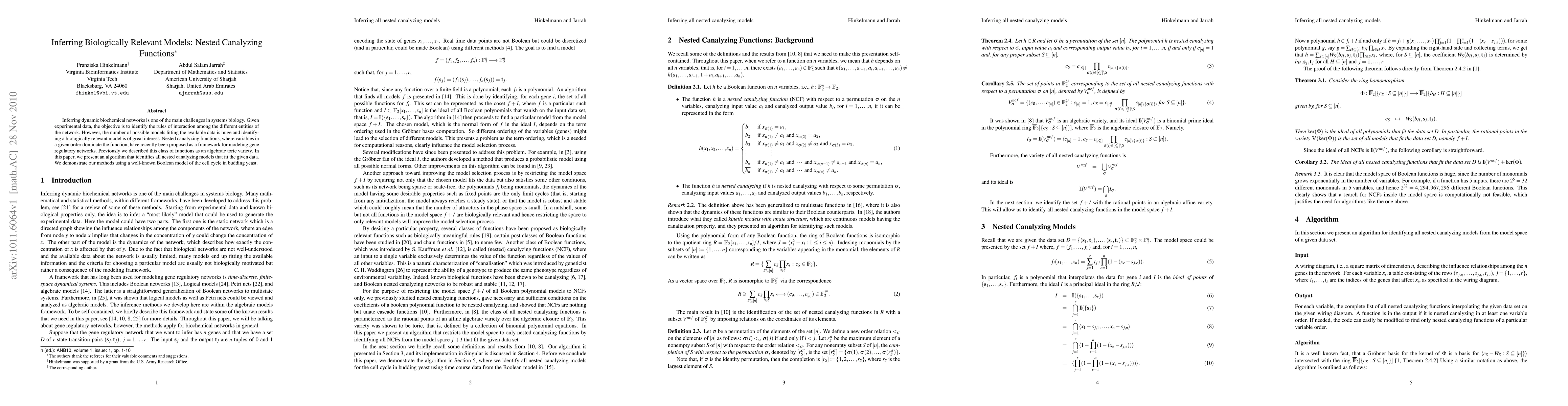 This paper proposes an algorithm to identify nested canalyzing functions that fit experimental data for inferring dynamic biochemical networks, specifically gene regulatory networks. The method is demonstrated using a Boolean model of the budding yeast cell cycle.