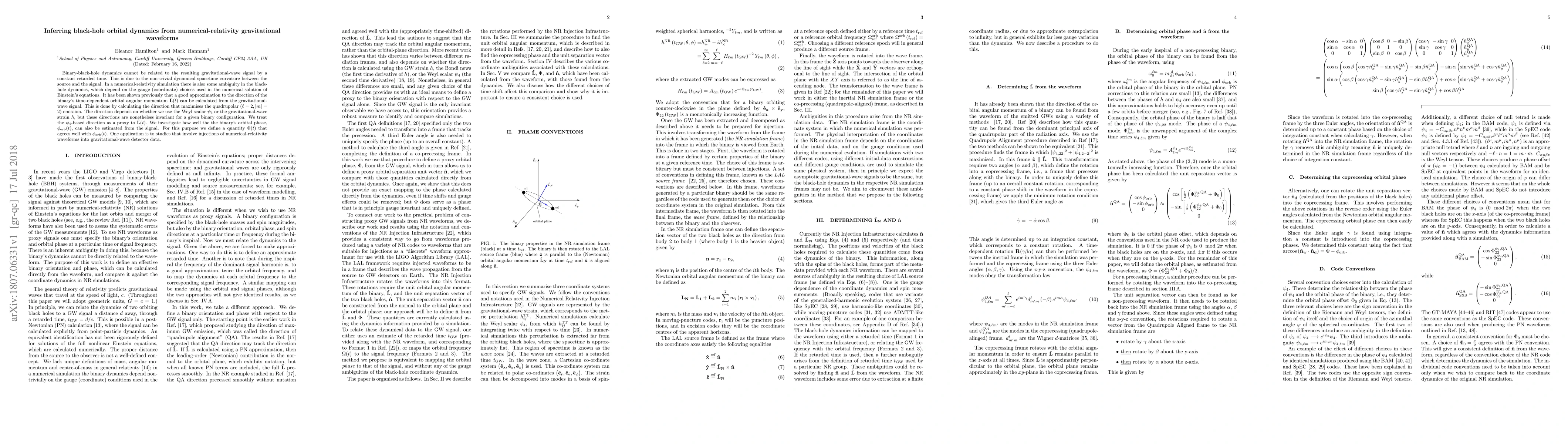 This paper explores inferring binary black-hole orbital dynamics from numerical-relativity gravitational waveforms, focusing on estimating the orbital phase $\phi_{\rm orb}(t)$ from the signal. It introduces a quantity $\Phi(t)$ that correlates well with $\phi_{\rm orb}(t)$, providing a method for analyzing waveforms in gravitational-wave detector data.