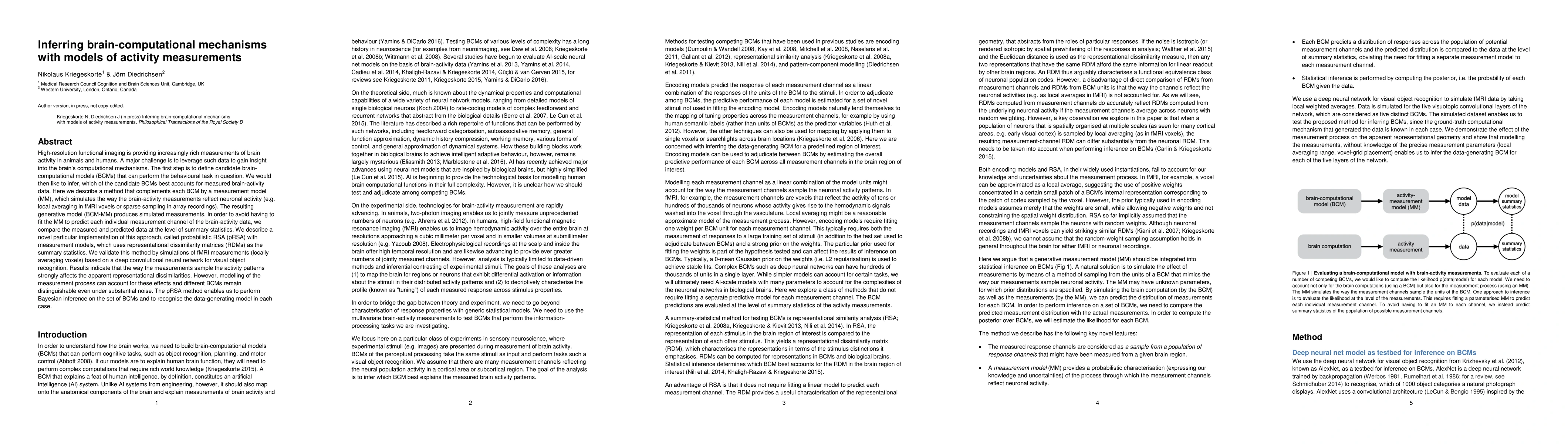 Researchers developed a method to infer brain-computational mechanisms by combining models of brain activity with measurement models that simulate how brain-activity data is collected. This approach allows for distinguishing between different computational models even under substantial noise.