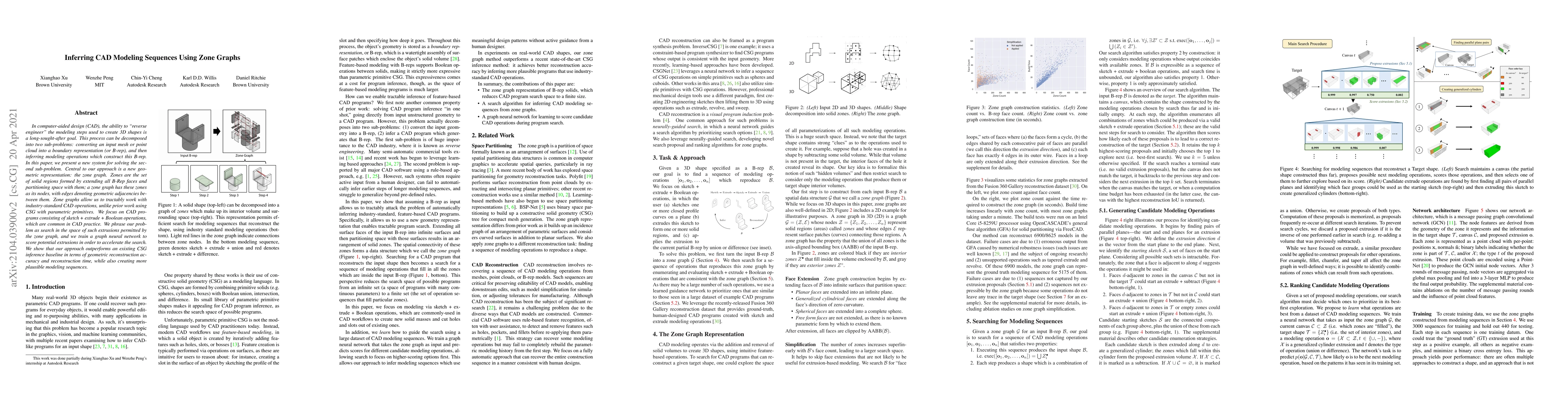 In computer-aided design (CAD), the ability to "reverse engineer" the modeling steps used to create 3D shapes is a long-sought-after goal. This process can be decomposed into two sub-problems: converting an input mesh or point cloud into a boundary representation (or B-rep), and then inferring modeling operations which construct this B-rep. In this paper, we present a new system for solving the second sub-problem. Central to our approach is a new geometric representation: the zone graph. Zones are the set of solid regions formed by extending all B-Rep faces and partitioning space with them; a zone graph has these zones as its nodes, with edges denoting geometric adjacencies between them. Zone graphs allow us to tractably work with industry-standard CAD operations, unlike prior work using CSG with parametric primitives. We focus on CAD programs consisting of sketch + extrude + Boolean operations, which are common in CAD practice. We phrase our problem as search in the space of such extrusions permitted by the zone graph, and we train a graph neural network to score potential extrusions in order to accelerate the search. We show that our approach outperforms an existing CSG inference baseline in terms of geometric reconstruction accuracy and reconstruction time, while also creating more plausible modeling sequences.