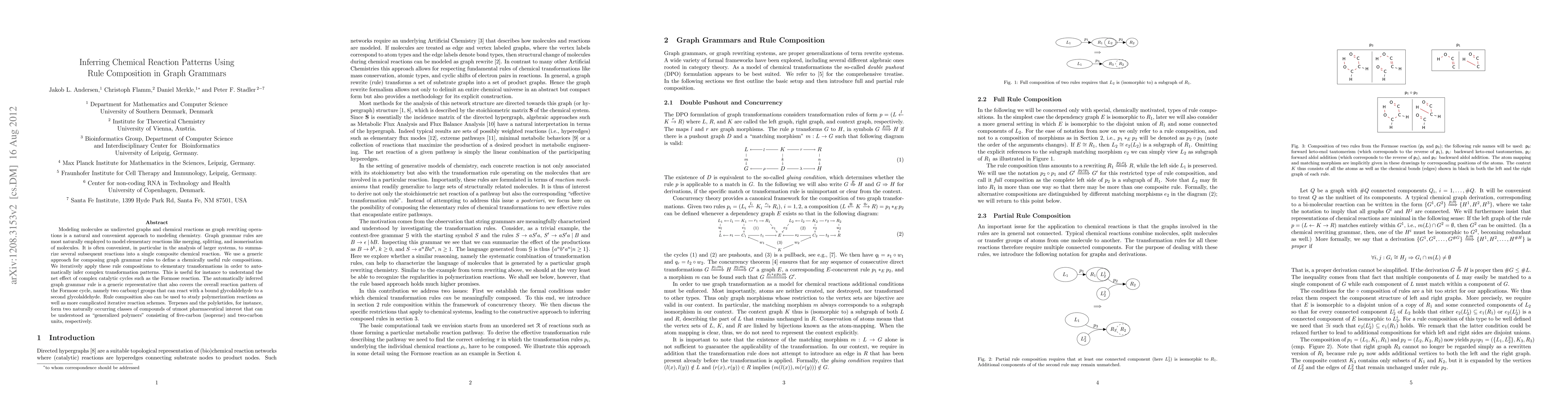 Modeling molecules as undirected graphs and chemical reactions as graph rewriting operations is a natural and convenient approach tom odeling chemistry. Graph grammar rules are most naturally employed to model elementary reactions like merging, splitting, and isomerisation of molecules. It is often convenient, in particular in the analysis of larger systems, to summarize several subsequent reactions into a single composite chemical reaction. We use a generic approach for composing graph grammar rules to define a chemically useful rule compositions. We iteratively apply these rule compositions to elementary transformations in order to automatically infer complex transformation patterns. This is useful for instance to understand the net effect of complex catalytic cycles such as the Formose reaction. The automatically inferred graph grammar rule is a generic representative that also covers the overall reaction pattern of the Formose cycle, namely two carbonyl groups that can react with a bound glycolaldehyde to a second glycolaldehyde. Rule composition also can be used to study polymerization reactions as well as more complicated iterative reaction schemes. Terpenes and the polyketides, for instance, form two naturally occurring classes of compounds of utmost pharmaceutical interest that can be understood as "generalized polymers" consisting of five-carbon (isoprene) and two-carbon units, respectively.