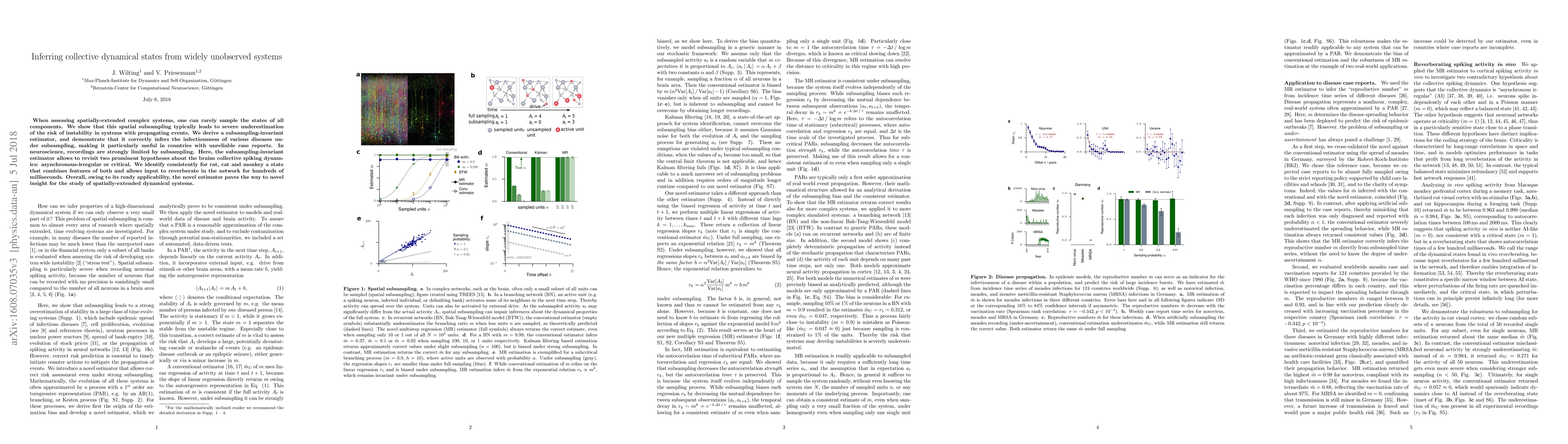 When assessing spatially-extended complex systems, one can rarely sample the states of all components. We show that this spatial subsampling typically leads to severe underestimation of the risk of instability in systems with propagating events. We derive a subsampling-invariant estimator, and demonstrate that it correctly infers the infectiousness of various diseases under subsampling, making it particularly useful in countries with unreliable case reports. In neuroscience, recordings are strongly limited by subsampling. Here, the subsampling-invariant estimator allows to revisit two prominent hypotheses about the brain's collective spiking dynamics: asynchronous-irregular or critical. We identify consistently for rat, cat and monkey a state that combines features of both and allows input to reverberate in the network for hundreds of milliseconds. Overall, owing to its ready applicability, the novel estimator paves the way to novel insight for the study of spatially-extended dynamical systems.