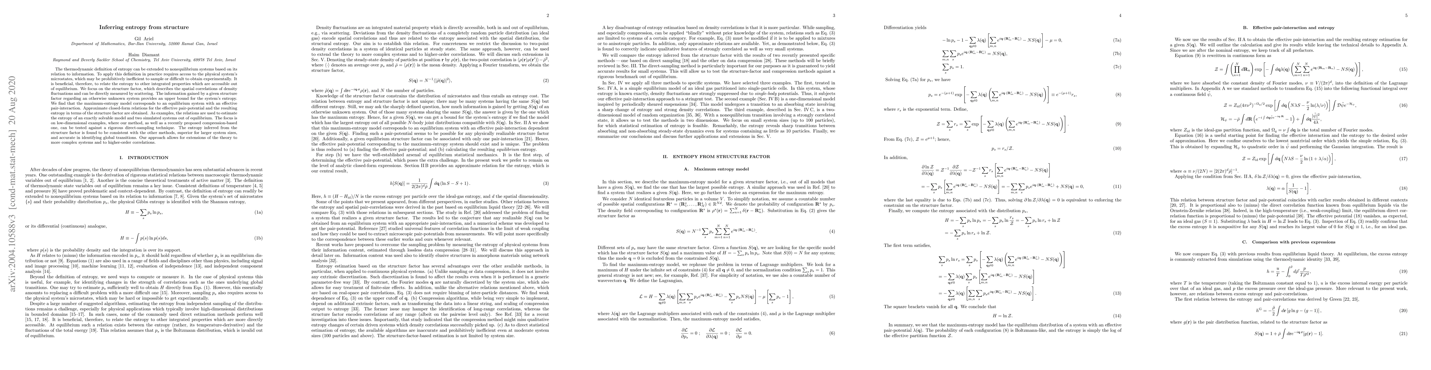 Researchers developed a method to estimate entropy from structure factor measurements in nonequilibrium systems, providing an upper bound for the system's entropy and offering a more efficient alternative to direct sampling methods.