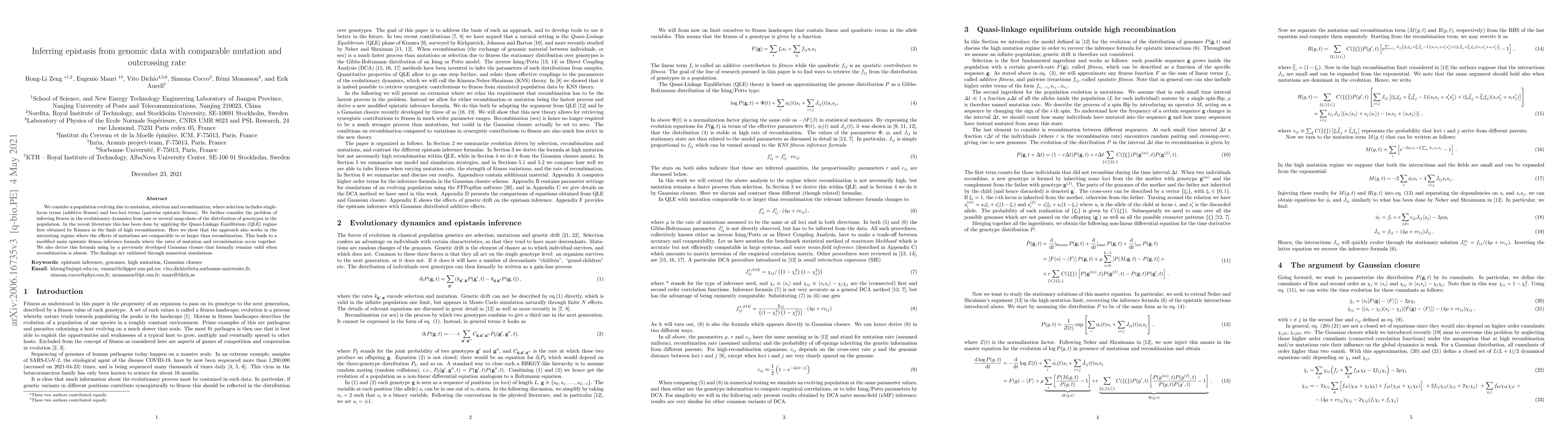 We consider a population evolving due to mutation, selection and recombination, where selection includes single-locus terms (additive fitness) and two-loci terms (pairwise epistatic fitness). We further consider the problem of inferring fitness in the evolutionary dynamics from one or several snap-shots of the distribution of genotypes in the population. In the recent literature this has been done by applying the Quasi-Linkage Equilibrium (QLE) regime first obtained by Kimura in the limit of high recombination. Here we show that the approach also works in the interesting regime where the effects of mutations are comparable to or larger than recombination. This leads to a modified main epistatic fitness inference formula where the rates of mutation and recombination occur together. We also derive this formula using by a previously developed Gaussian closure that formally remains valid when recombination is absent. The findings are validated through numerical simulations.