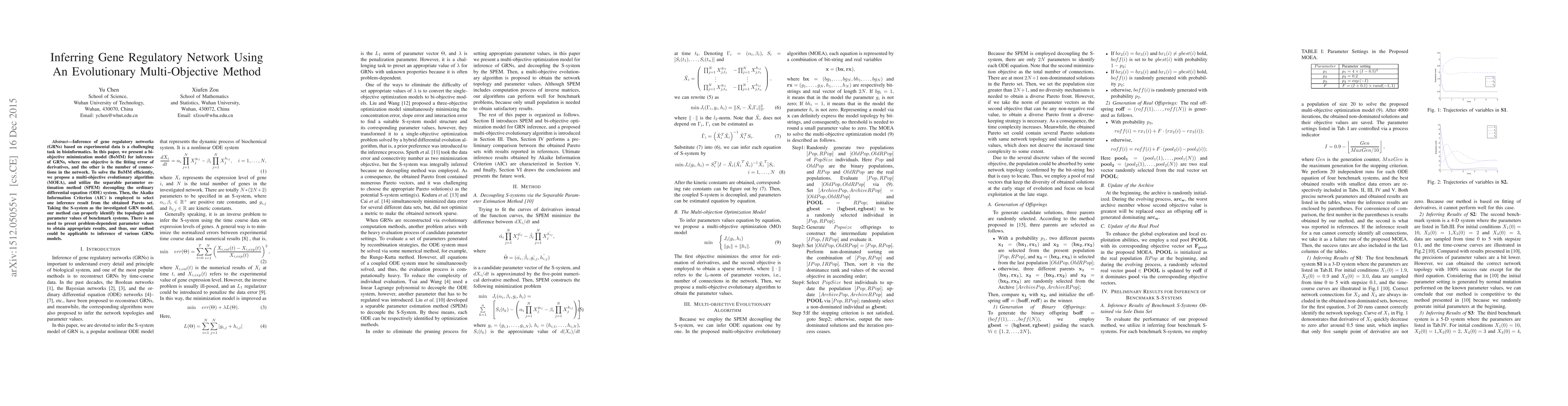 This paper proposes a bi-objective minimization model (BoMM) and a multi-objective evolutionary algorithm (MOEA) for inferring gene regulatory networks (GRNs) by minimizing fitting error and network complexity. The method uses SPEM and AIC for optimal result selection, demonstrating effective GRN inference without preset parameters.