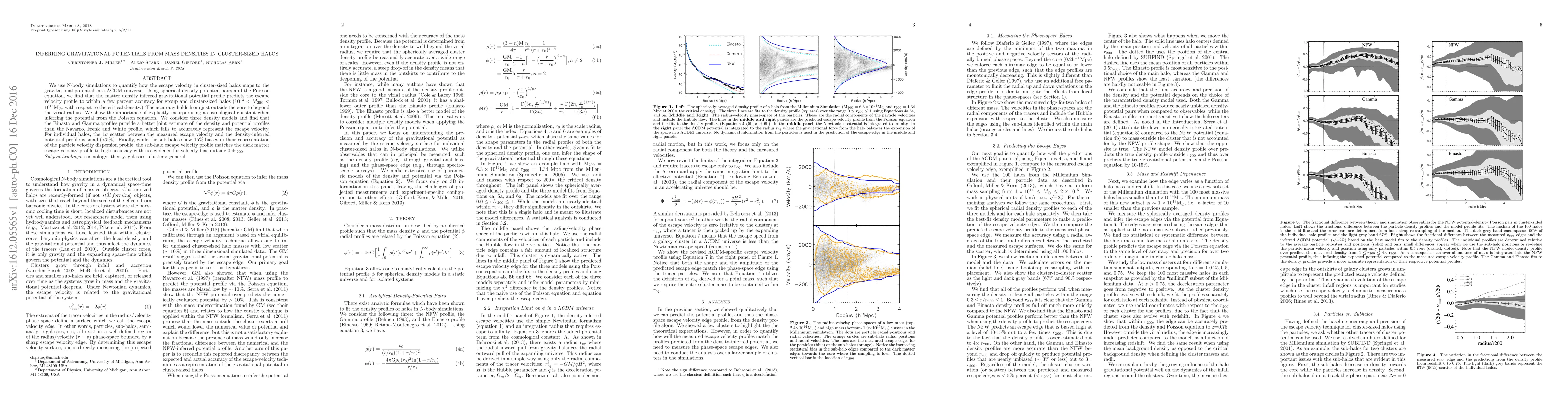 This paper uses N-body simulations to explore the relationship between mass density and gravitational potential in cluster-sized halos, finding that the Einasto and Gamma density profiles better predict escape velocities than the Navarro-Frenk-White profile, with minimal scatter (<5%) for individual halos.