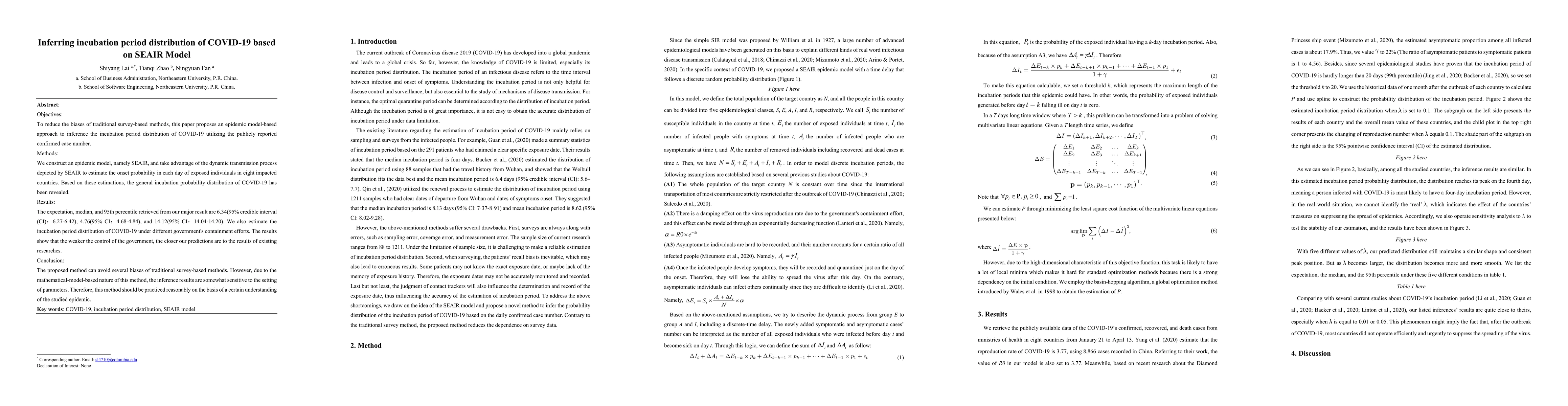 This paper proposes an epidemic model-based approach to infer the incubation period distribution of COVID-19 using the SEAIR model and confirmed case numbers, avoiding biases from traditional survey methods. The study estimates the onset probability of exposed individuals across eight countries, revealing the general incubation probability distribution.