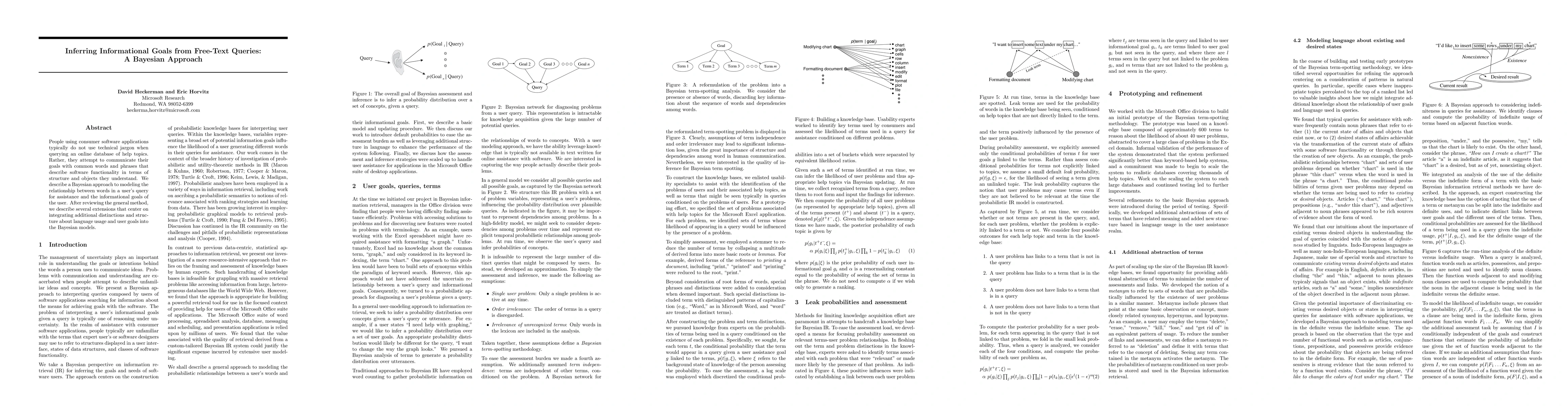 This paper proposes a Bayesian method to infer users' informational goals from their free-text queries in consumer software applications, focusing on common language rather than technical jargon. The approach integrates additional linguistic and goal-oriented distinctions to enhance the model's accuracy.