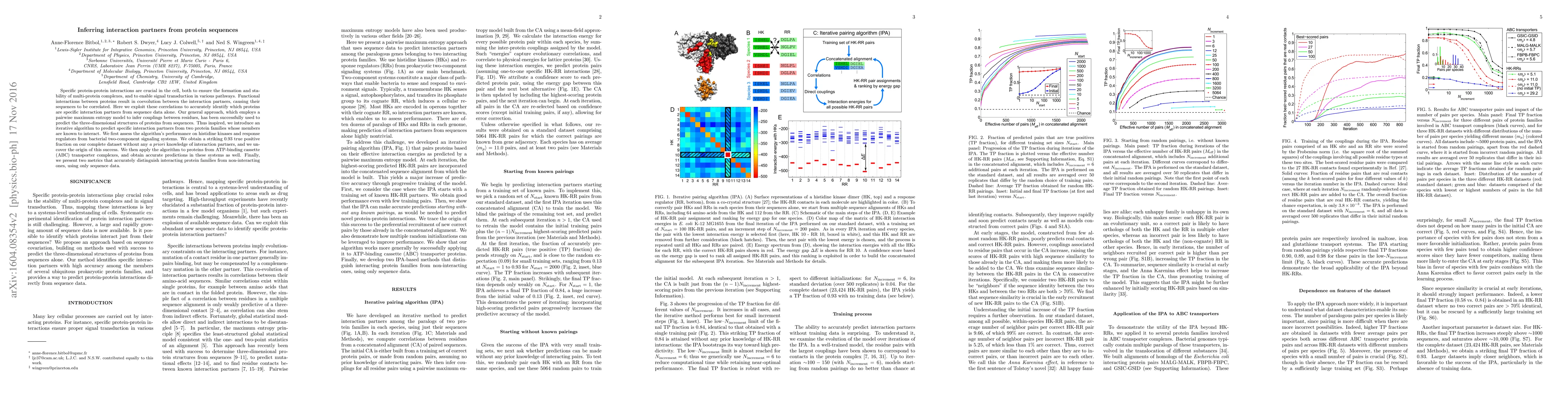 This paper introduces an iterative algorithm to predict specific protein-protein interaction partners based on sequence data, achieving a high true positive fraction of 0.93 in bacterial signaling systems and ABC transporter complexes. The method uses a pairwise maximum entropy model and identifies interactions without prior knowledge, distinguishing interacting from non-interacting protein families.