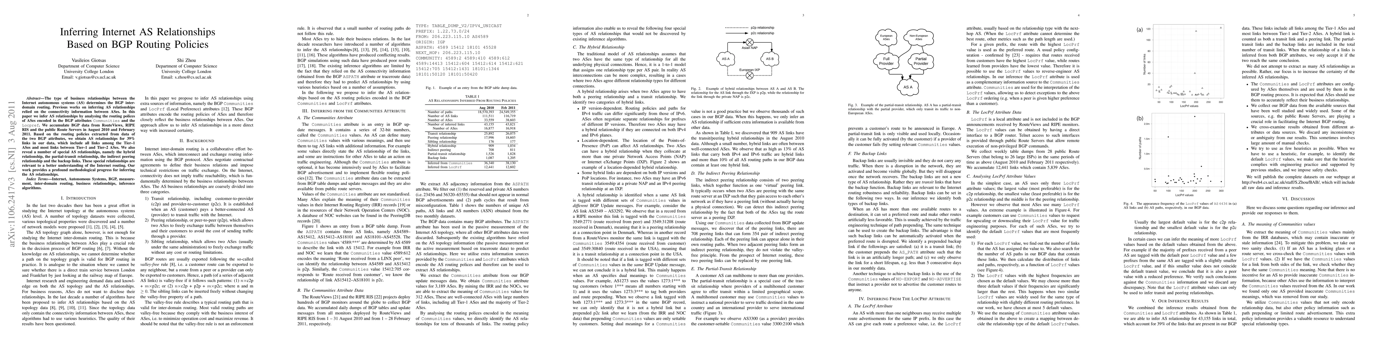 This paper proposes a novel method for inferring Internet AS relationships based on BGP routing policies, specifically analyzing BGP attributes Communities and Locpref. It identifies special relationships such as hybrid, partial-transit, indirect peering, and backup links, contributing to a deeper understanding of Internet routing.