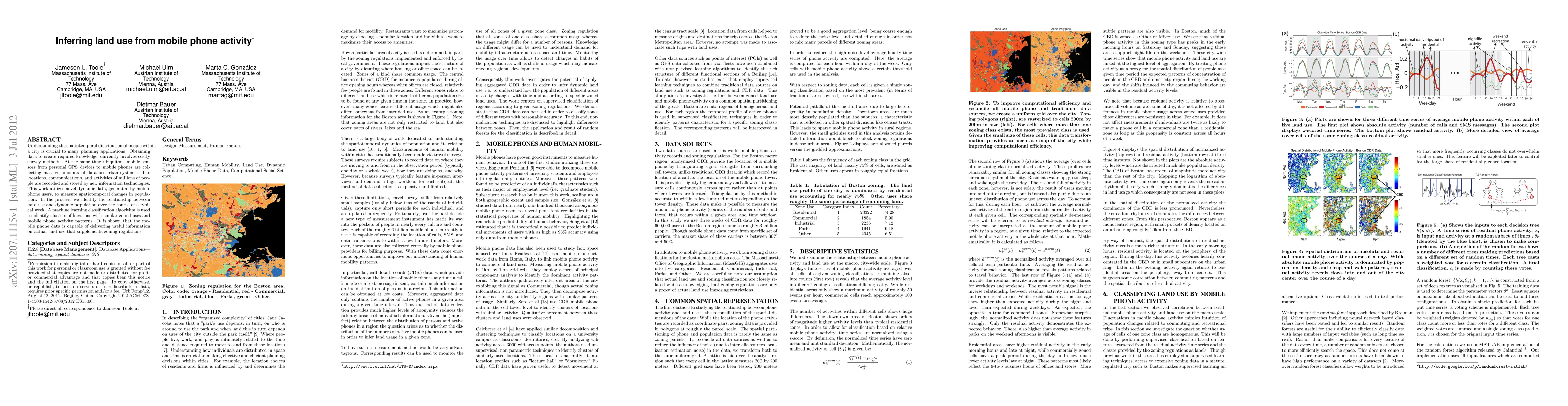 This paper explores using mobile phone data to infer land use patterns by analyzing the spatiotemporal distribution of population. It employs machine learning to identify clusters of similar land use and mobile phone activity, demonstrating that mobile phone data can provide valuable insights into actual land use that complements traditional zoning regulations.