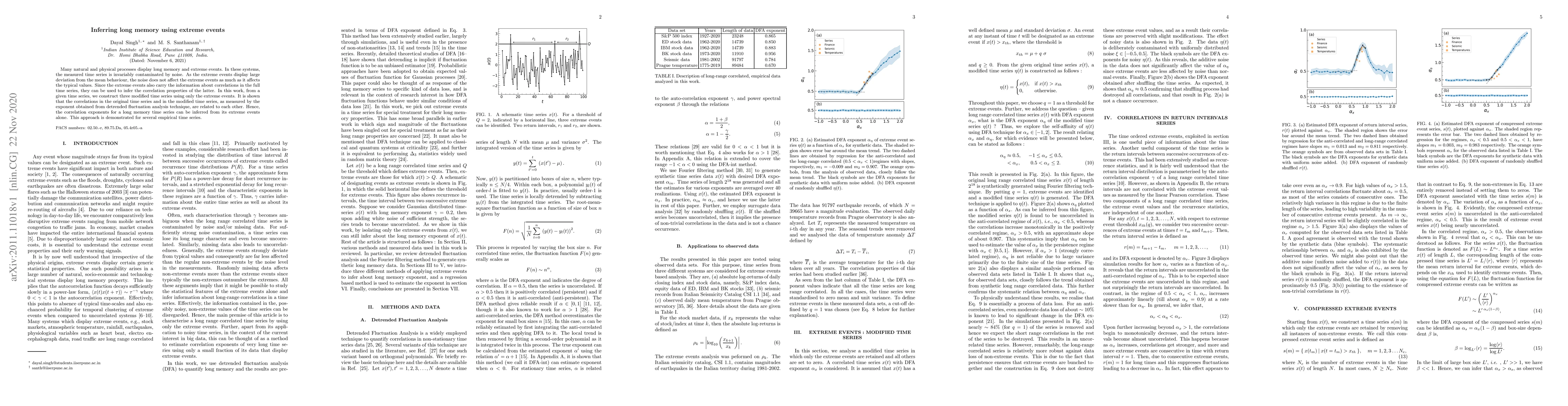 Researchers developed a method to infer long memory properties from extreme events in time series data, which can help remove noise and retain correlation information. This approach allows for the estimation of correlation exponents from just the most significant values in the data.