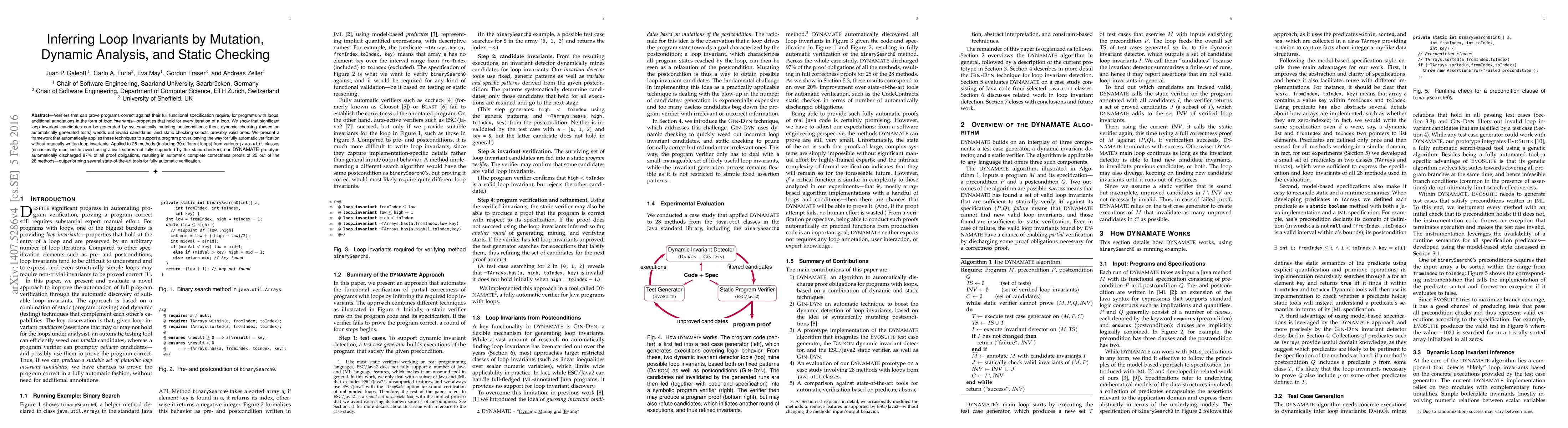 This paper presents a framework for automatically inferring loop invariants through mutation, dynamic analysis, and static checking, achieving high success rates in automatically proving the correctness of Java methods without manual annotations. The DYNAMATE prototype demonstrated superior performance in fully automatic verification compared to existing tools.