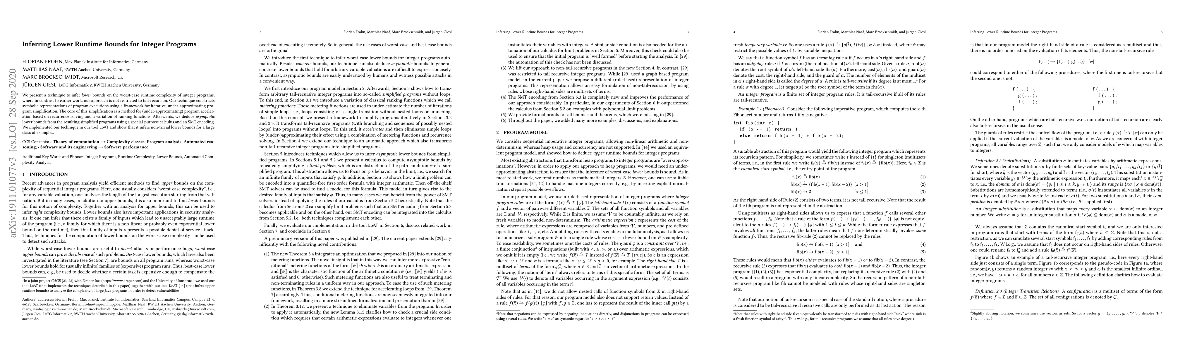 This paper introduces a novel technique to infer lower bounds on the runtime complexity of integer programs by constructing symbolic representations and using iterative simplification, recurrence solving, and ranking functions. The authors implemented their method in LoAT and demonstrated its effectiveness in inferring non-trivial lower bounds for various program examples.