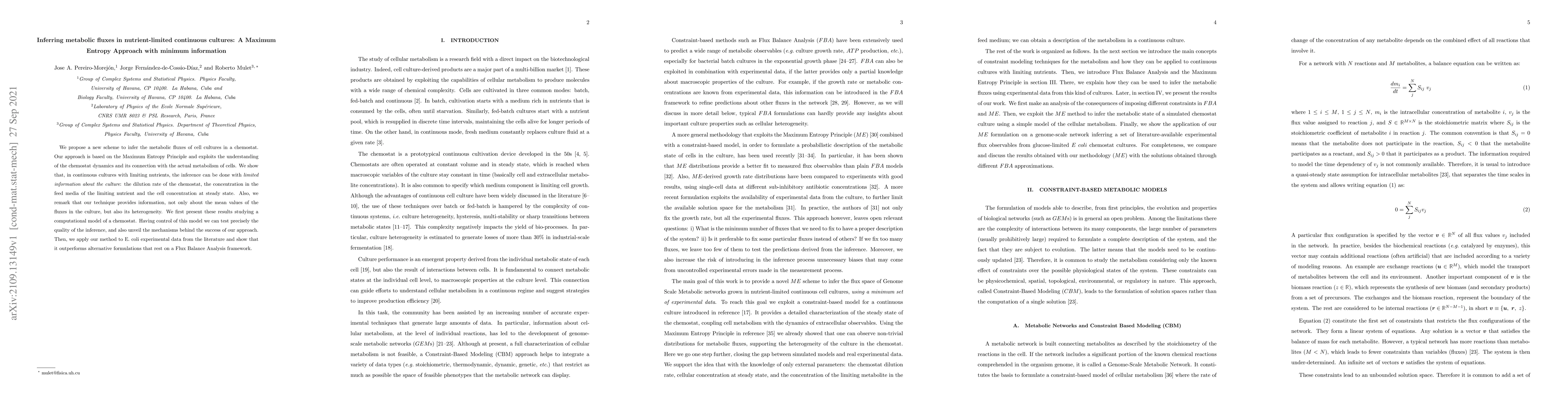 This paper proposes a Maximum Entropy Approach to infer metabolic fluxes in nutrient-limited continuous cultures using minimal information, demonstrating its effectiveness through both computational models and experimental E. coli data, outperforming traditional Flux Balance Analysis methods.