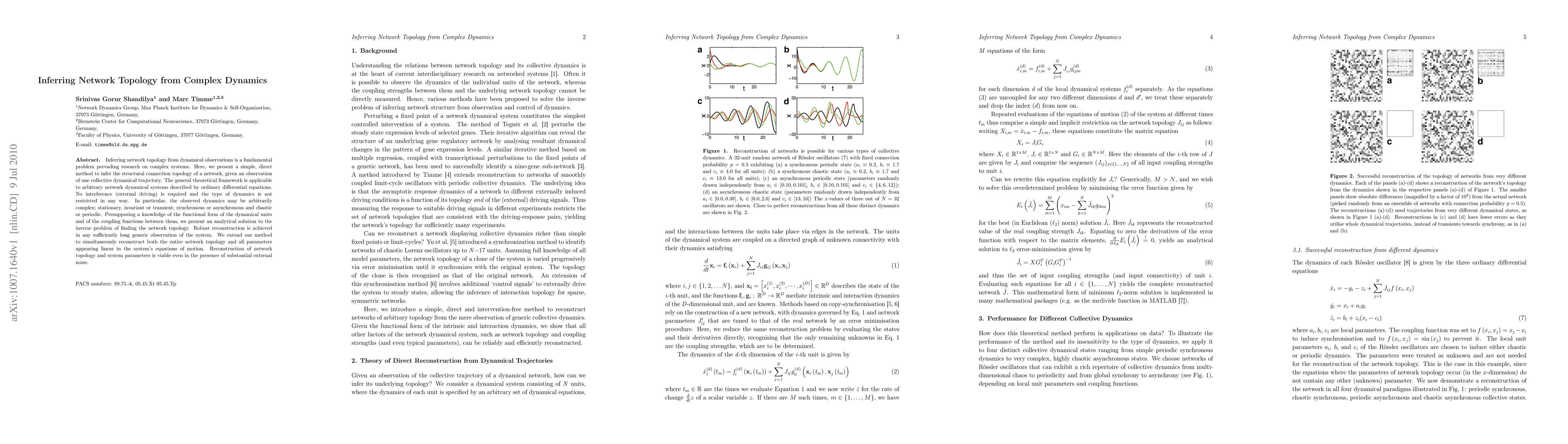 This paper presents a method to infer network topology from a single collective dynamical trajectory without external driving, applicable to various types of complex systems. The method reconstructs the network structure and parameters even in noisy conditions, leveraging the functional form of dynamical units and coupling functions.