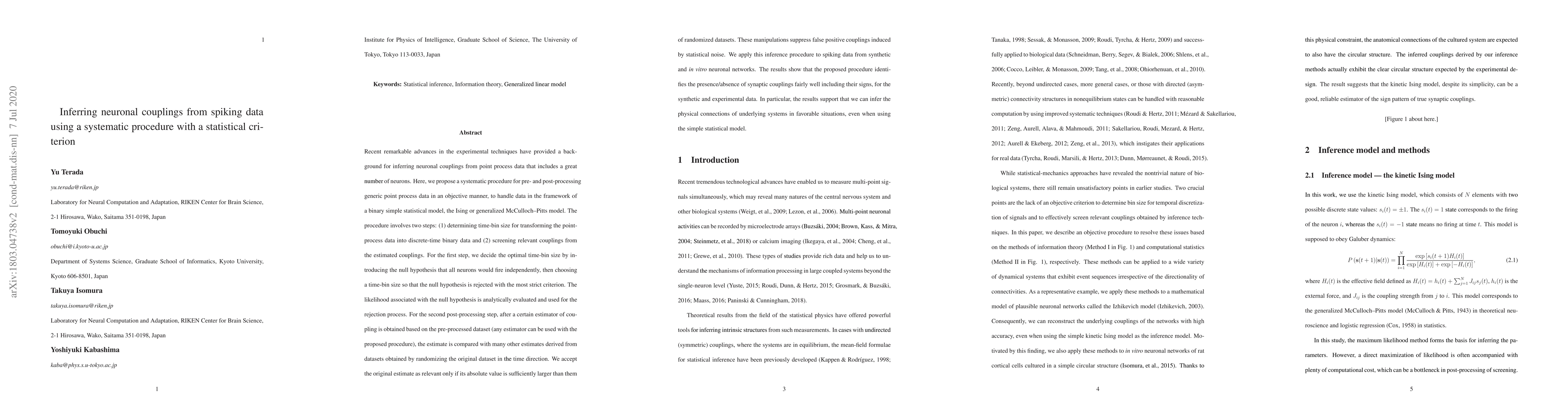 This paper proposes a systematic procedure to infer neuronal couplings from spiking data using a statistical model. The method involves determining an optimal time-bin size and screening relevant couplings by comparing estimates against randomized datasets, effectively reducing false positives. The procedure is shown to accurately identify synaptic couplings in both synthetic and experimental data.
