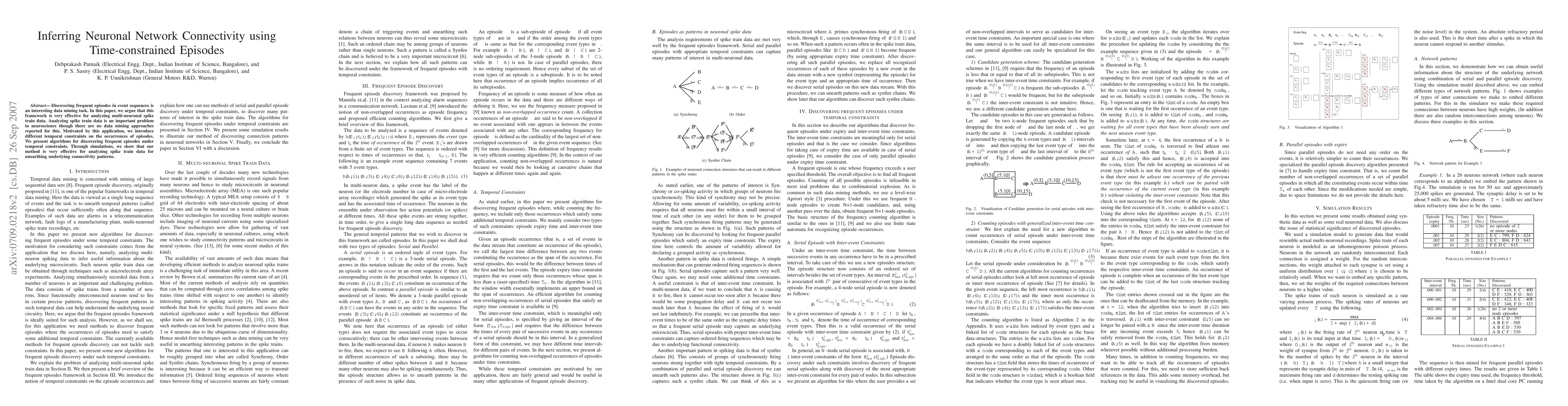 This paper proposes a data mining approach to analyze multi-neuronal spike train data by discovering frequent episodes under temporal constraints. The introduced algorithms effectively uncover underlying neuronal network connectivity patterns, as demonstrated through simulations.