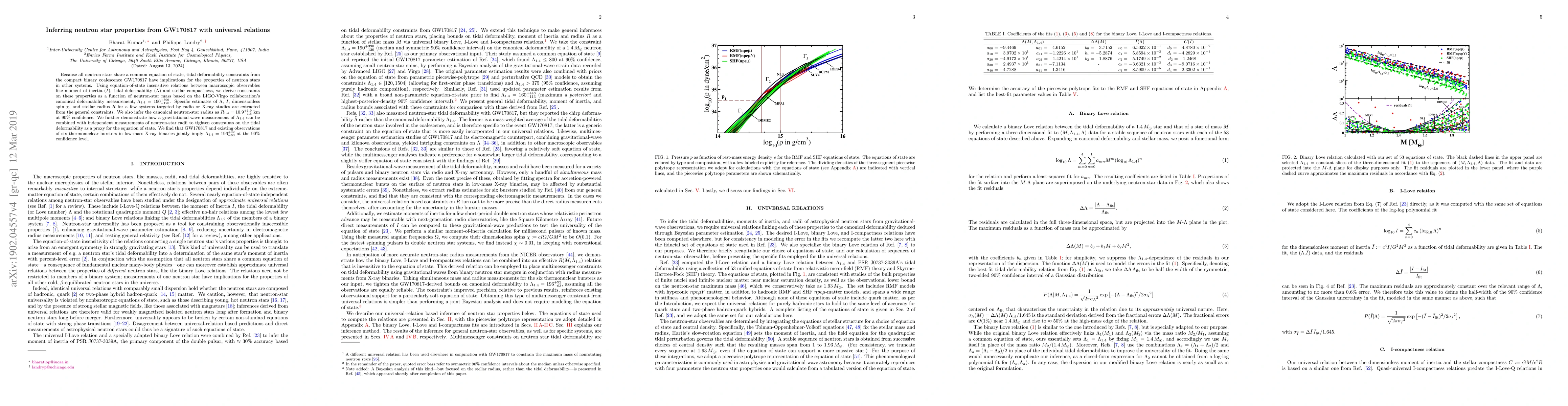 This paper uses universal relations between neutron star properties to infer constraints on moment of inertia, tidal deformability, and radius from the GW170817 event, finding a canonical neutron star radius of $R_{1.4} = 10.9^{+1.9}_{-1.5}$ km. It also demonstrates how combining GW measurements with independent radius observations can further refine these constraints.