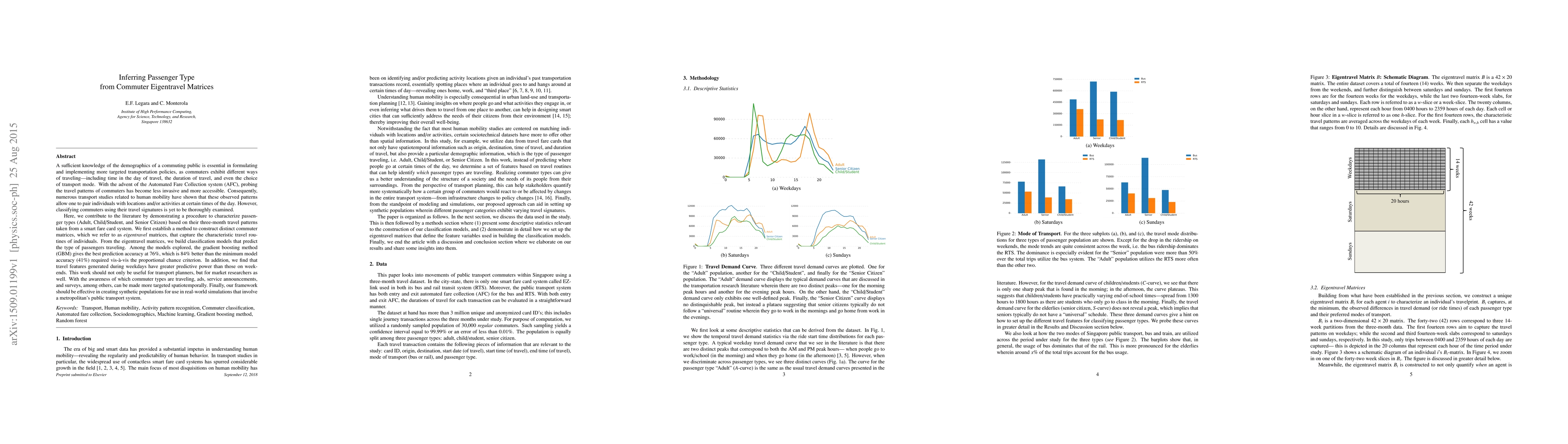 A sufficient knowledge of the demographics of a commuting public is essential in formulating and implementing more targeted transportation policies, as commuters exhibit different ways of traveling. With the advent of the Automated Fare Collection system (AFC), probing the travel patterns of commuters has become less invasive and more accessible. Consequently, numerous transport studies related to human mobility have shown that these observed patterns allow one to pair individuals with locations and/or activities at certain times of the day. However, classifying commuters using their travel signatures is yet to be thoroughly examined. Here, we contribute to the literature by demonstrating a procedure to characterize passenger types (Adult, Child/Student, and Senior Citizen) based on their three-month travel patterns taken from a smart fare card system. We first establish a method to construct distinct commuter matrices, which we refer to as eigentravel matrices, that capture the characteristic travel routines of individuals. From the eigentravel matrices, we build classification models that predict the type of passengers traveling. Among the models explored, the gradient boosting method (GBM) gives the best prediction accuracy at 76%, which is 84% better than the minimum model accuracy (41%) required vis-\`a-vis the proportional chance criterion. In addition, we find that travel features generated during weekdays have greater predictive power than those on weekends. This work should not only be useful for transport planners, but for market researchers as well. With the awareness of which commuter types are traveling, ads, service announcements, and surveys, among others, can be made more targeted spatiotemporally. Finally, our framework should be effective in creating synthetic populations for use in real-world simulations that involve a metropolitan's public transport system.