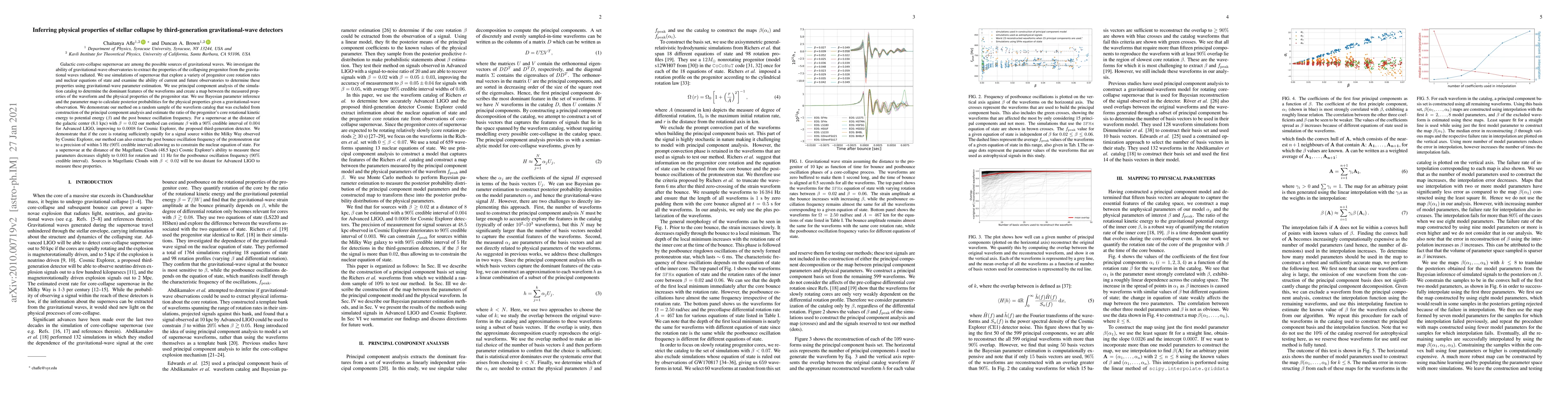 Galactic core-collapse supernovae are among the possible sources of gravitational waves. We investigate the ability of gravitational-wave observatories to extract the properties of the collapsing progenitor from the gravitational waves radiated. We use simulations of supernovae that explore a variety of progenitor core rotation rates and nuclear equations of state and examine the ability of current and future observatories to determine these properties using gravitational-wave parameter estimation. We use principal component analysis of the simulation catalog to determine the dominant features of the waveforms and create a map between the measured properties of the waveform and the physical properties of the progenitor. We use Bayesian parameter inference and the parameter map to calculate posterior probabilities for the physical properties given a gravitational-wave observation. We estimate the ratio of the progenitor's core rotational kinetic energy to potential energy ($\beta$) and the post bounce oscillation frequency. For a supernovae at the distance of the galactic center (8.1 kpc) with $\beta = 0.02$ our method can estimate $\beta$ with a $90\%$ credible interval of $0.004$ for Advanced LIGO, improving to $0.0008$ for Cosmic Explorer. We demonstrate that if the core is rotating sufficiently rapidly for a signal observed by Cosmic Explorer, our method can also extract the post bounce oscillation frequency of the protoneutron star to a precision of within $5$~Hz ($90\%$ credible interval) allowing us to constrain the nuclear equation of state. For a supernovae at the distance of the Magellanic Clouds (48.5 kpc) Cosmic Explorer's ability to measure these parameters decreases slightly to $0.003$ for rotation and $11$~Hz for the postbounce oscillation frequency ($90\%$ credible interval). Sources in Magellanic Clouds will be too distant for Advanced LIGO to measure these properties.