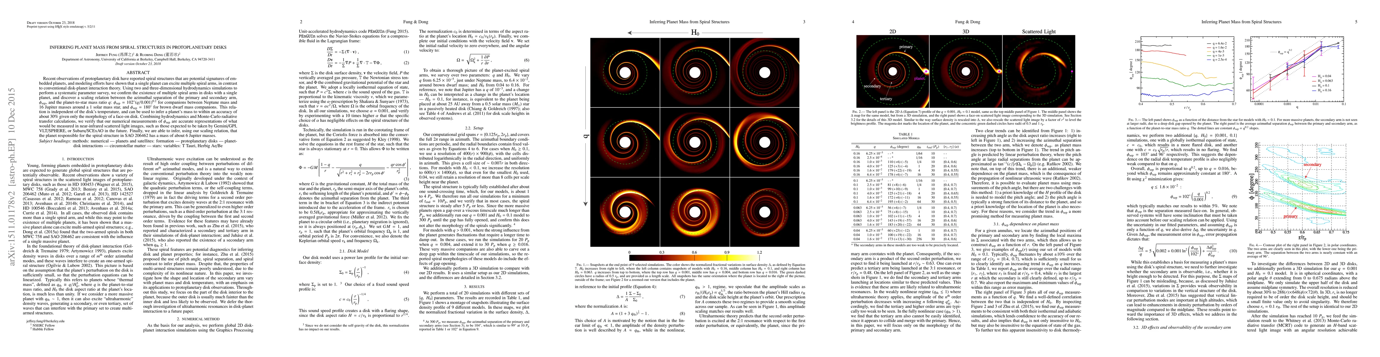 This paper uses hydrodynamic simulations to confirm the presence of multiple spiral arms in protoplanetary disks caused by a single planet. It establishes a scaling relation between the azimuthal separation of these arms and the planet-to-star mass ratio, enabling the inference of a planet's mass from disk morphology with about 30% accuracy.