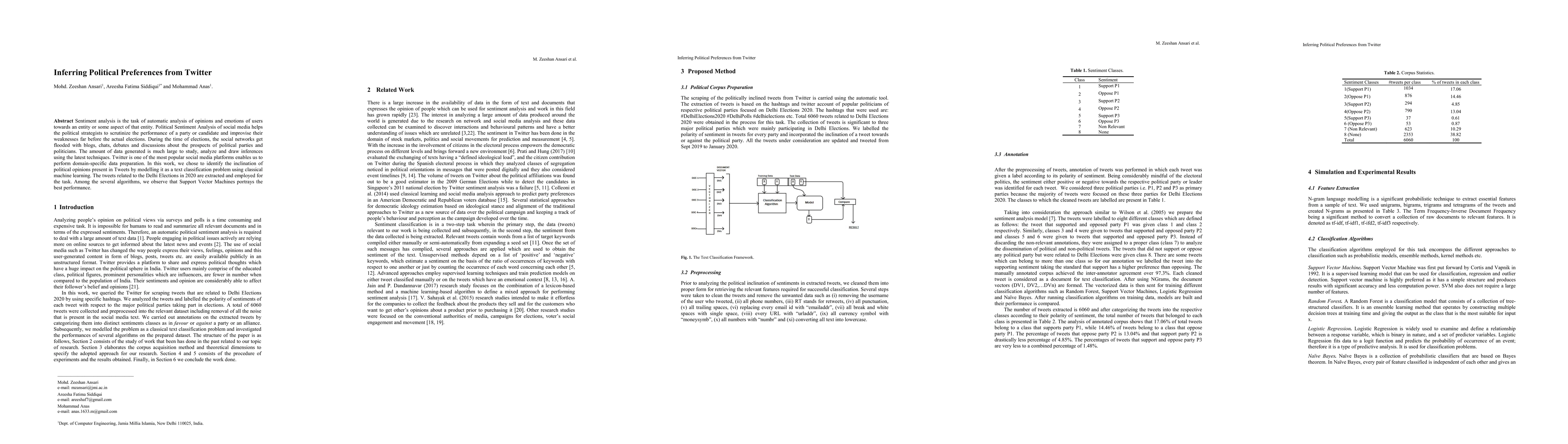 Researchers used Twitter data from the 2020 Delhi Elections to analyze political sentiment using machine learning algorithms, finding that Support Vector Machines performed best in predicting political opinions.