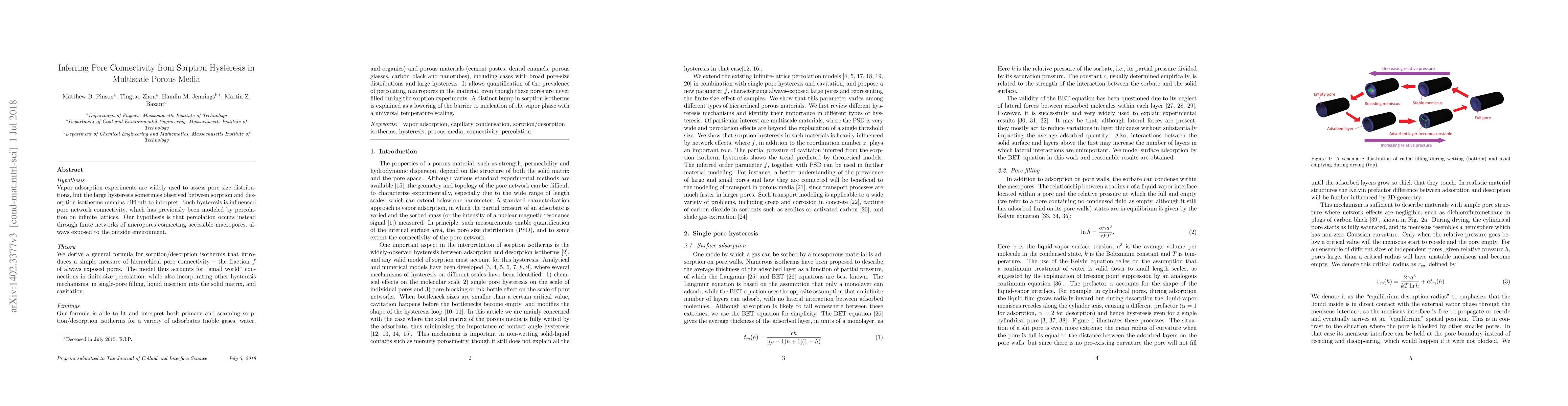 This paper proposes a new model to interpret sorption hysteresis in multiscale porous media, suggesting that pore connectivity is governed by the fraction of always exposed pores. This model fits and explains various sorption/desorption isotherms, quantifying the prevalence of percolating macropores and explaining a distinct bump in sorption isotherms through universal temperature scaling.