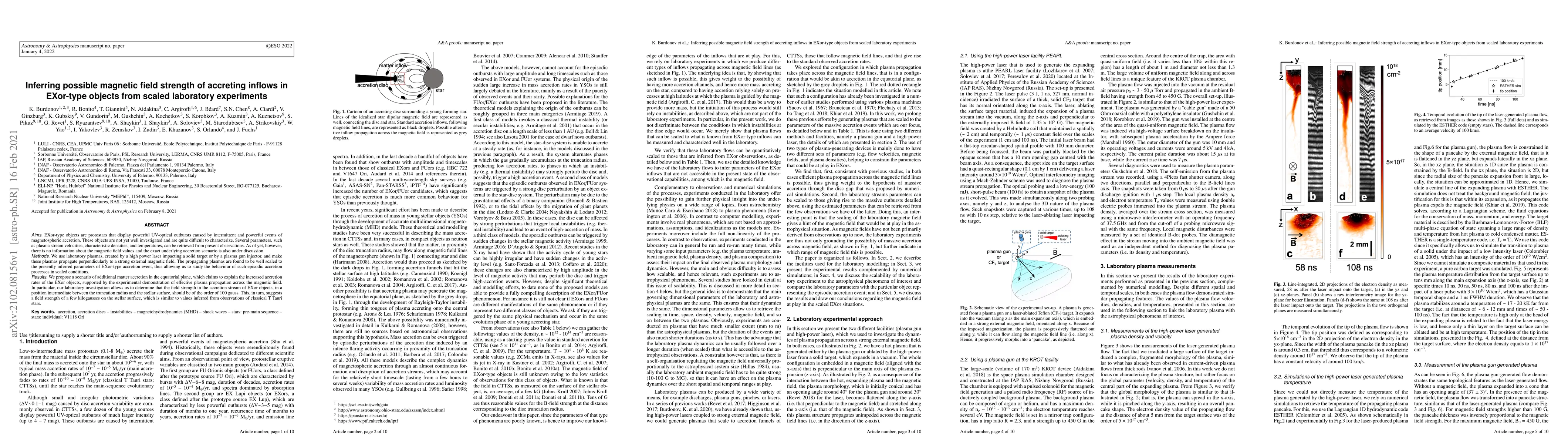 Aims. EXor-type objects are protostars that display powerful UV-optical outbursts caused by intermittent and powerful events of magnetospheric accretion. These objects are not yet well investigated and are quite difficult to characterize. Several parameters, such as plasma stream velocities, characteristic densities, and temperatures, can be retrieved from present observations. As of yet, however, there is no information about the magnetic field values and the exact underlying accretion scenario is also under discussion. Methods. We use laboratory plasmas, created by a high power laser impacting a solid target or by a plasma gun injector, and make these plasmas propagate perpendicularly to a strong external magnetic field. The propagating plasmas are found to be well scaled to the presently inferred parameters of EXor-type accretion event, thus allowing us to study the behaviour of such episodic accretion processes in scaled conditions. Results. We propose a scenario of additional matter accretion in the equatorial plane, which claims to explain the increased accretion rates of the EXor objects, supported by the experimental demonstration of effective plasma propagation across the magnetic field. In particular, our laboratory investigation allows us to determine that the field strength in the accretion stream of EXor objects, in a position intermediate between the truncation radius and the stellar surface, should be of the order of 100 gauss. This, in turn, suggests a field strength of a few kilogausses on the stellar surface, which is similar to values inferred from observations of classical T Tauri stars.