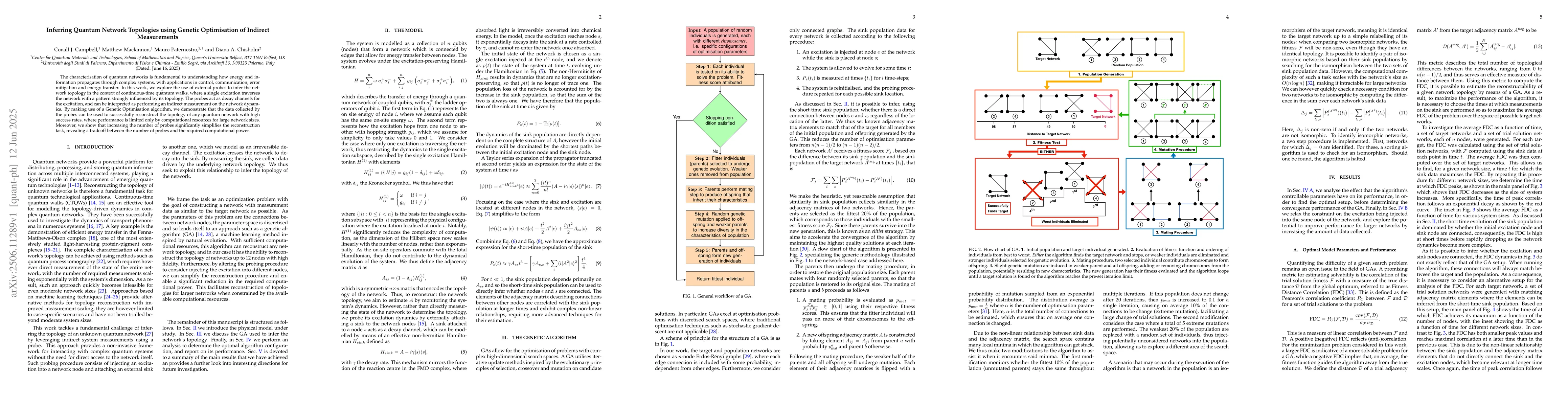 The characterisation of quantum networks is fundamental to understanding how energy and information propagates through complex systems, with applications in control, communication, error mitigation and energy transfer. In this work, we explore the use of external probes to infer the network topology in the context of continuous-time quantum walks, where a single excitation traverses the network with a pattern strongly influenced by its topology. The probes act as decay channels for the excitation, and can be interpreted as performing an indirect measurement on the network dynamics. By making use of a Genetic Optimisation algorithm, we demonstrate that the data collected by the probes can be used to successfully reconstruct the topology of any quantum network with high success rates, where performance is limited only by computational resources for large network sizes. Moreover, we show that increasing the number of probes significantly simplifies the reconstruction task, revealing a tradeoff between the number of probes and the required computational power.