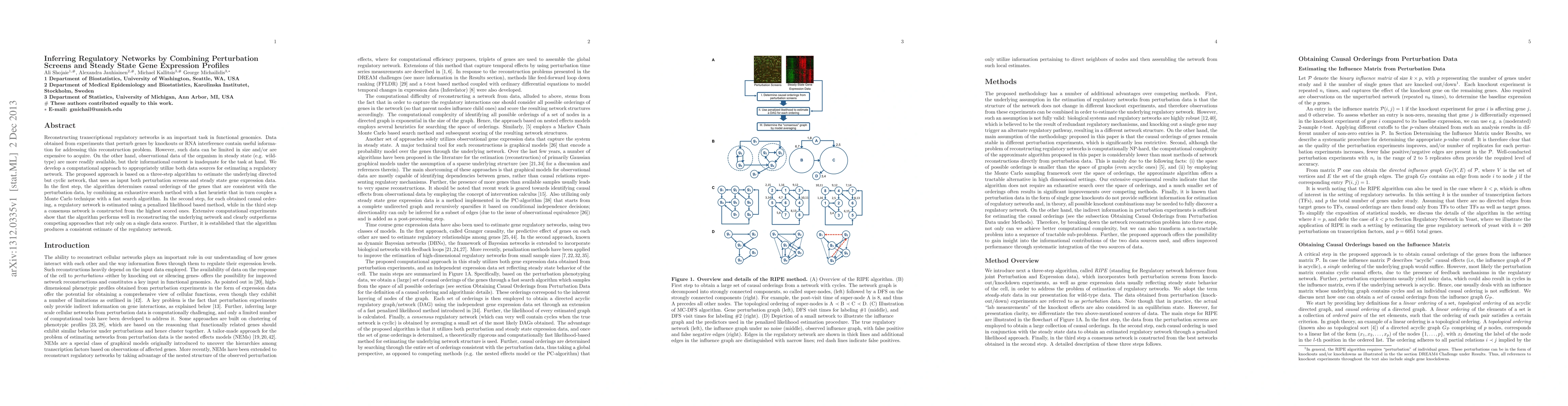 The main technical contribution is a three-step algorithm that combines an exhaustive search method with a fast heuristic, followed by a penalized likelihood-based method to estimate a regulatory network from both perturbation screens and steady-state gene expression data.