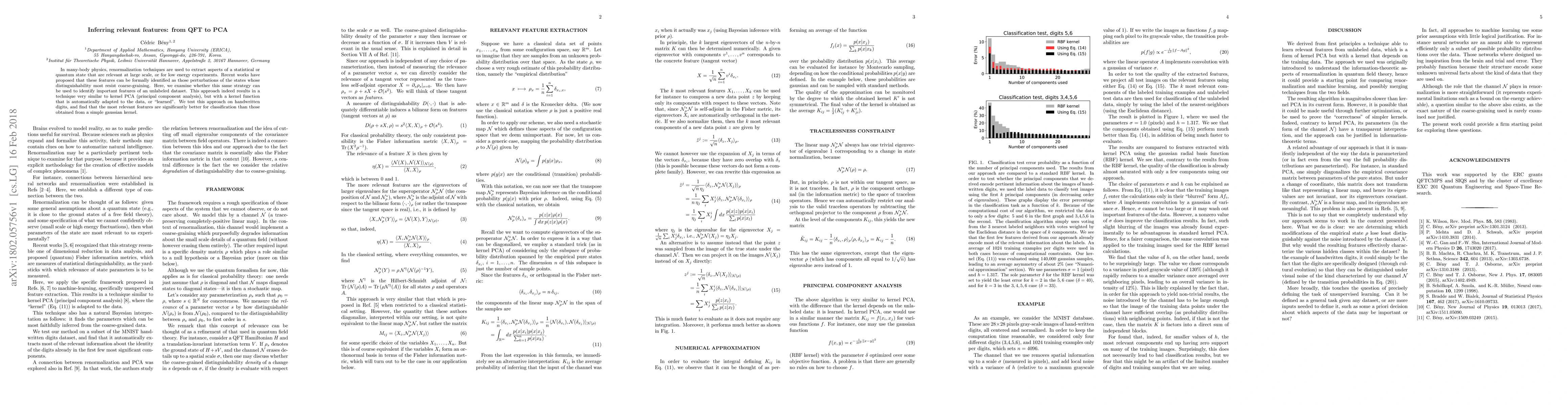 In many-body physics, renormalization techniques are used to extract aspects of a statistical or quantum state that are relevant at large scale, or for low energy experiments. Recent works have proposed that these features can be formally identified as those perturbations of the states whose distinguishability most resist coarse-graining. Here, we examine whether this same strategy can be used to identify important features of an unlabeled dataset. This approach indeed results in a technique very similar to kernel PCA (principal component analysis), but with a kernel function that is automatically adapted to the data, or "learned". We test this approach on handwritten digits, and find that the most relevant features are significantly better for classification than those obtained from a simple gaussian kernel.