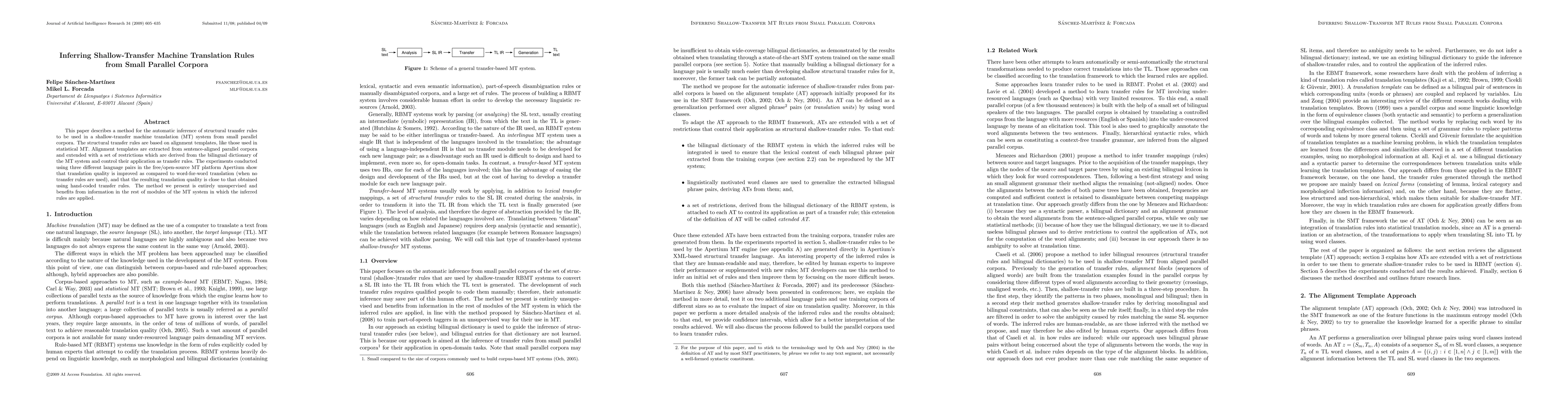 Researchers developed a method to create machine translation rules from small parallel corpora, improving translation quality in language pairs like Apertium, without requiring labeled data.