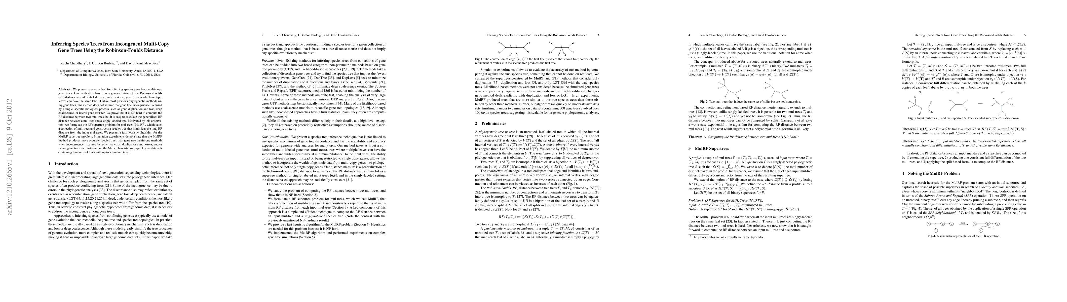 This paper introduces a new method for inferring species trees from multi-copy gene trees using a generalized Robinson-Foulds distance for multi-labeled trees. The proposed method, MulRF, constructs a species tree minimizing the total RF distance from input gene trees, and is shown to be more accurate than gene tree parsimony methods, especially when incongruence arises from multiple biological processes.