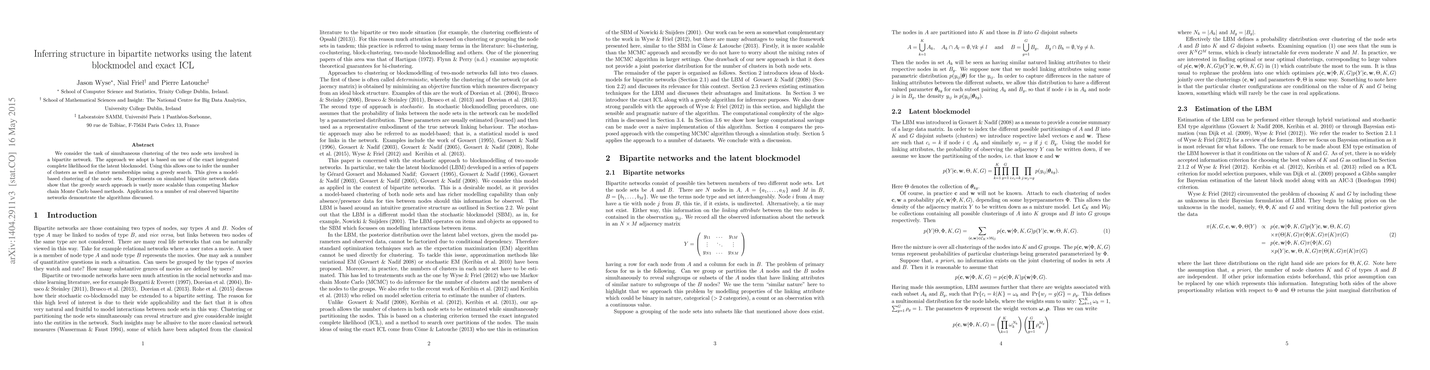 This paper proposes a latent block model with exact integrated complete likelihood for clustering nodes in bipartite networks, achieving scalable clustering through a greedy search. The method outperforms MCMC-based alternatives in scalability, as demonstrated by experiments on both simulated and real-world bipartite networks.